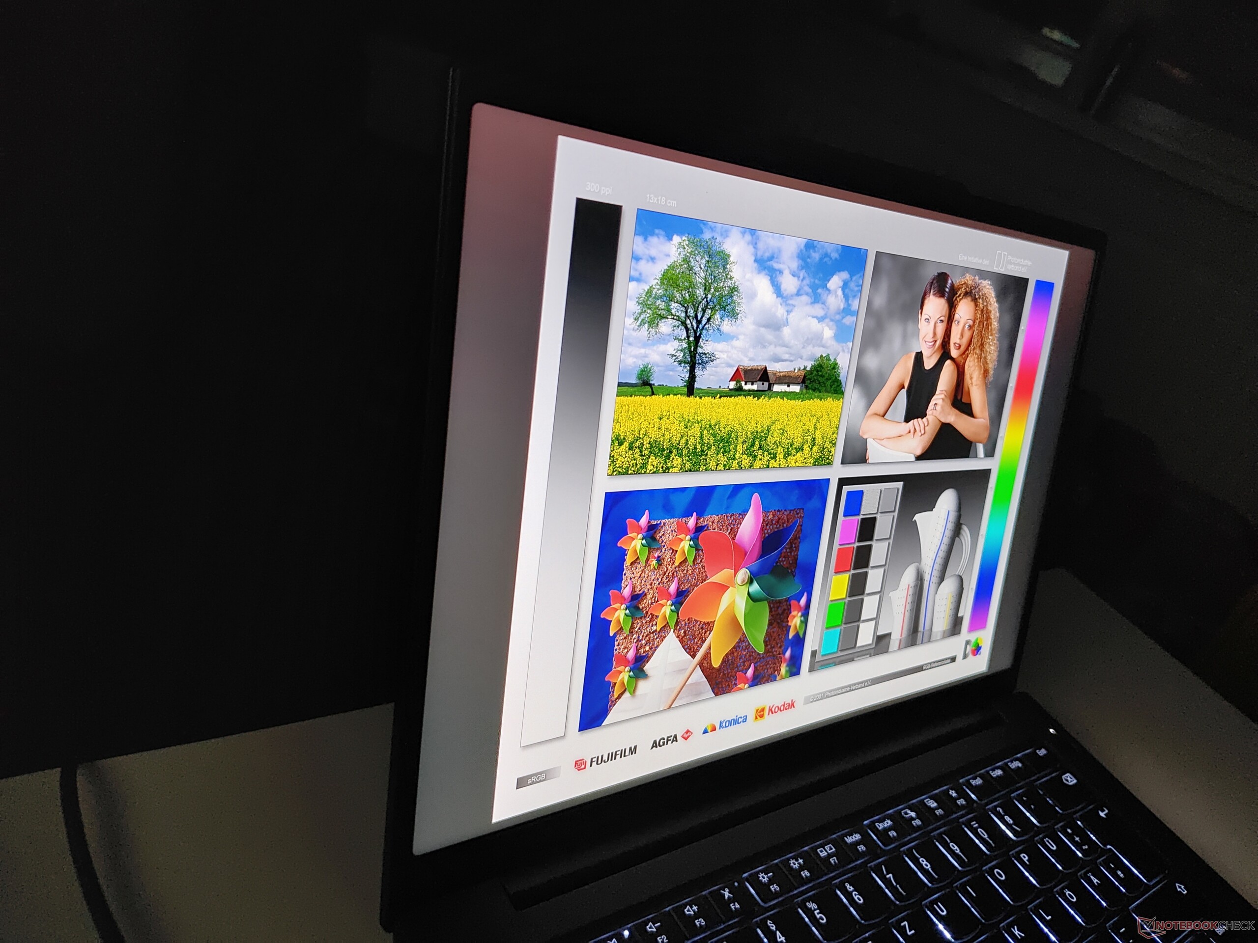 3K-skärmen har kvar de rundade hörnen från föregående ThinkPad P14s G5, men den är märkbart ljusstarkare den här gången med 502 cd/m² istället för 406 cd/m². Mycket bra: Det finns inget PWM-flimmer och knappt någon bakgrundsbelysning som blöder.