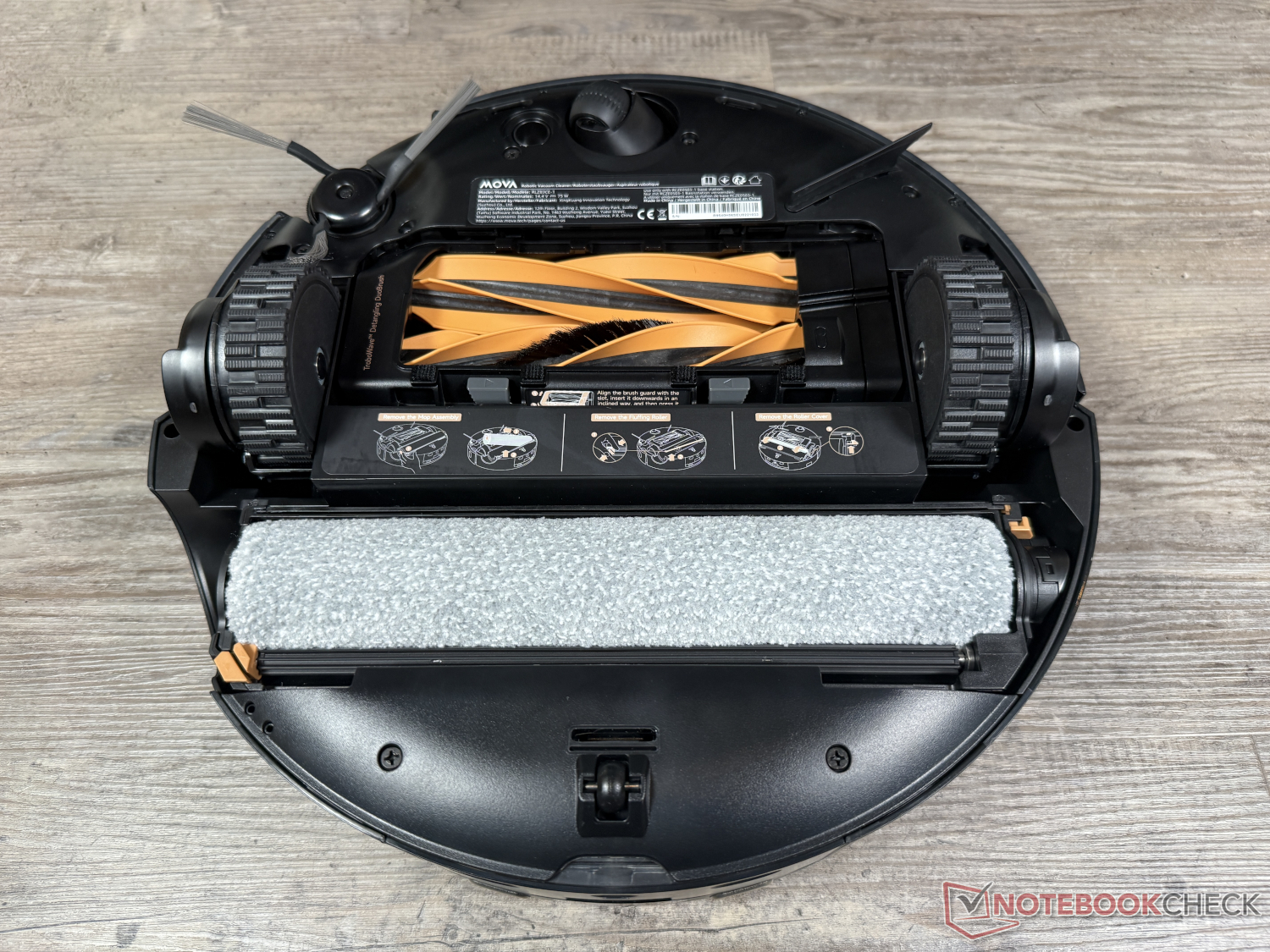 Vad som också är identiskt är att båda robotdammsugarna använder en bred moppningsrulle för moppning. Tekniken kallas Mova HydroForce mopping och sköljer hela tiden av rullmoppen, som tidigare befriats från smutsigt vatten, med färskvattenstrålar från tolv munstycken. Med 4.100 Pa är kontakttrycket något lägre än med Dreame. Den skyddssköld som täcker mopprullen vid rengöring av mattor finns dock med även här.