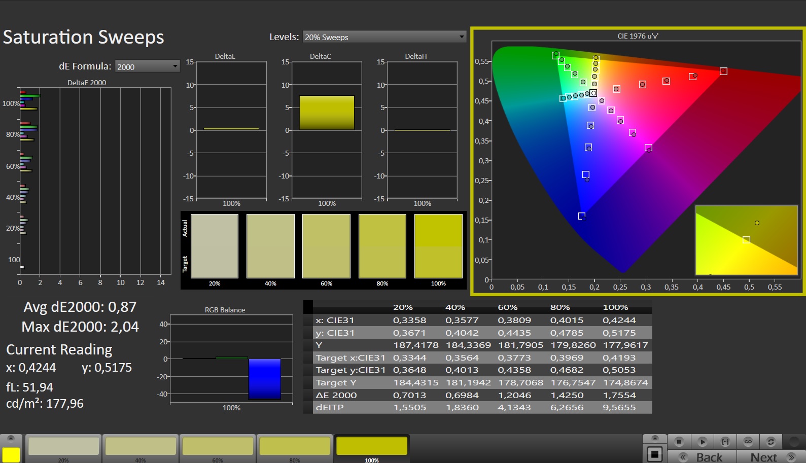 | Greyscale dE 2000 * | 3.1 | 1.3 58% | 1.26 59% | 1.6 48% |