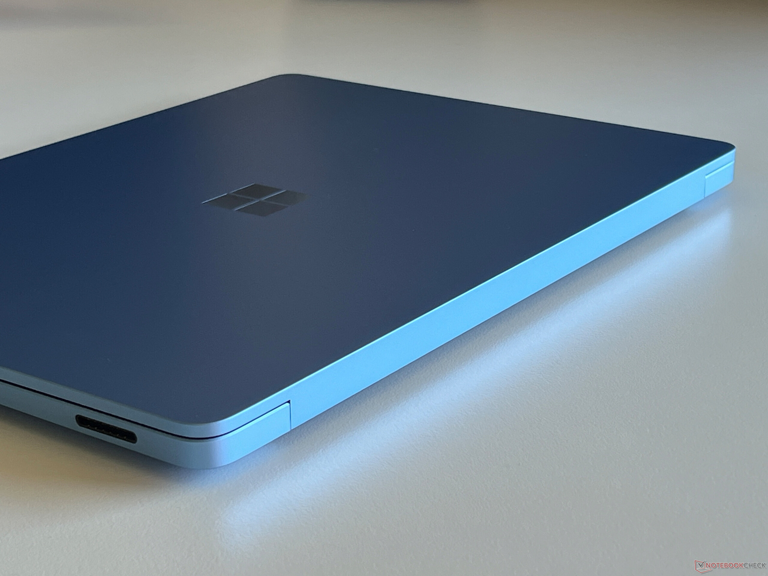 Ingenting har förändrats när det gäller designen av 7:e generationens Surface Laptop och på utsidan går det inte att se om det är en ny Snapdragon-modell. Det blir bara uppenbart med den nya Copilot-knappen. Metallhöljet är fortfarande underbart konstruerat och Microsoft erbjuder den bärbara datorn i färgerna svart, platina, gråbeige eller safirblå som är färgen på vår granskningsenhet. Beroende på hur ljuset faller är den safirblå modellen mycket slående och vi gillar den. Utöver detta finns det inga problem med fingeravtryck att tala om.