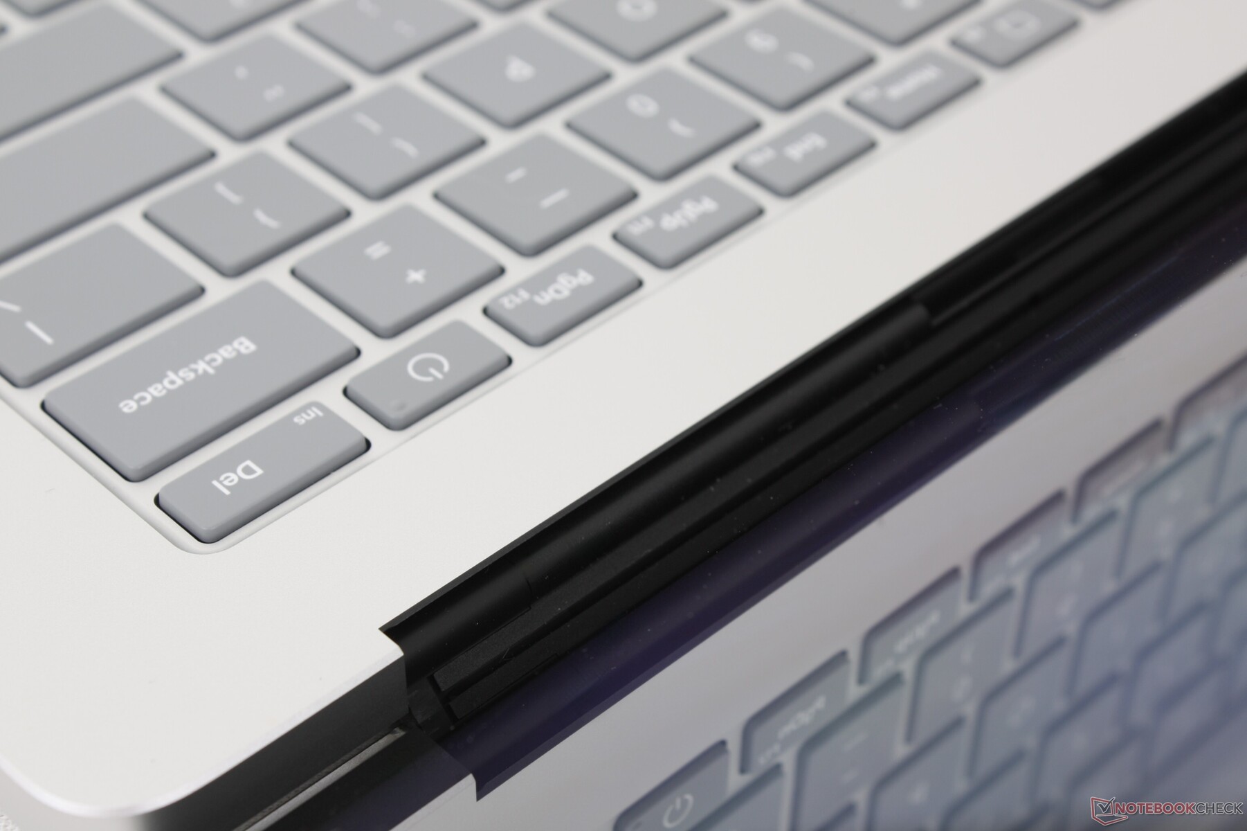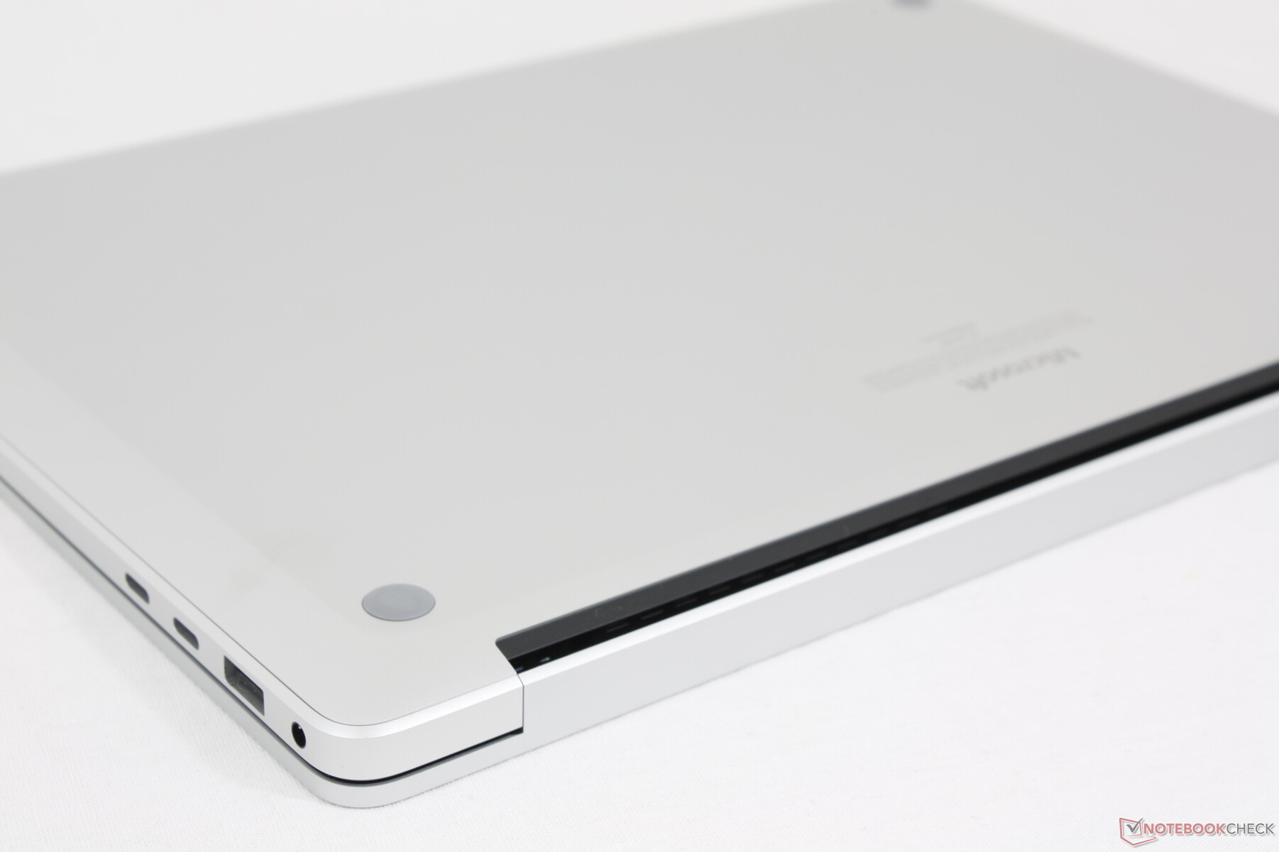Surface-serien har blivit igenkännlig för sin ljusa mattgrå metalldesign och trenden fortsätter med de ARM-baserade modellerna. Tyvärr innebär detta också att Surface Laptop 7 15 lider av några av samma problem som vi noterade på tidigare modeller, inklusive den begränsade maximala lockvinkeln på ~135 grader, relativt svaga gångjärn och en tendens att knaka när den hanteras. Den känns utan tvekan inte lika robust som några andra populära bärbara kontorsdatorer som ThinkPad X1 eller HP EliteBook-serien trots den attraktiva designen.