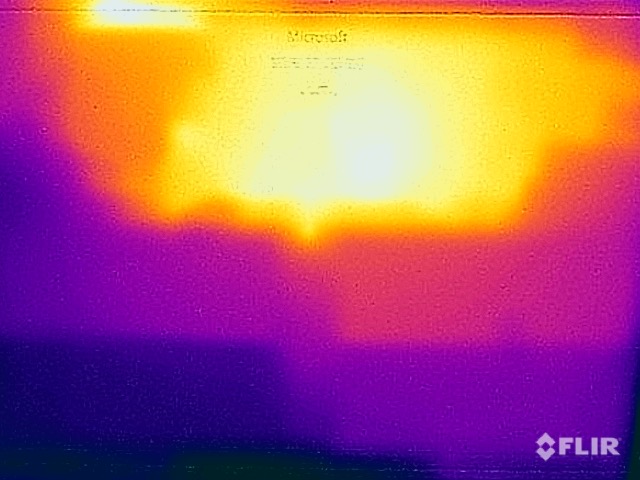 Redan vid tomgångsdrift blir den kompakta Surface Laptop Go 2 något varmare än väntat. Men detta leder inte till några begränsningar. Detta gäller även för mer krävande scenarier, där vi mäter ett maximum på nästan 47 °C i botten. Men eftersom hotspotten finns i mitten av enheten kan du fortfarande lägga den bärbara datorn i knät även då.