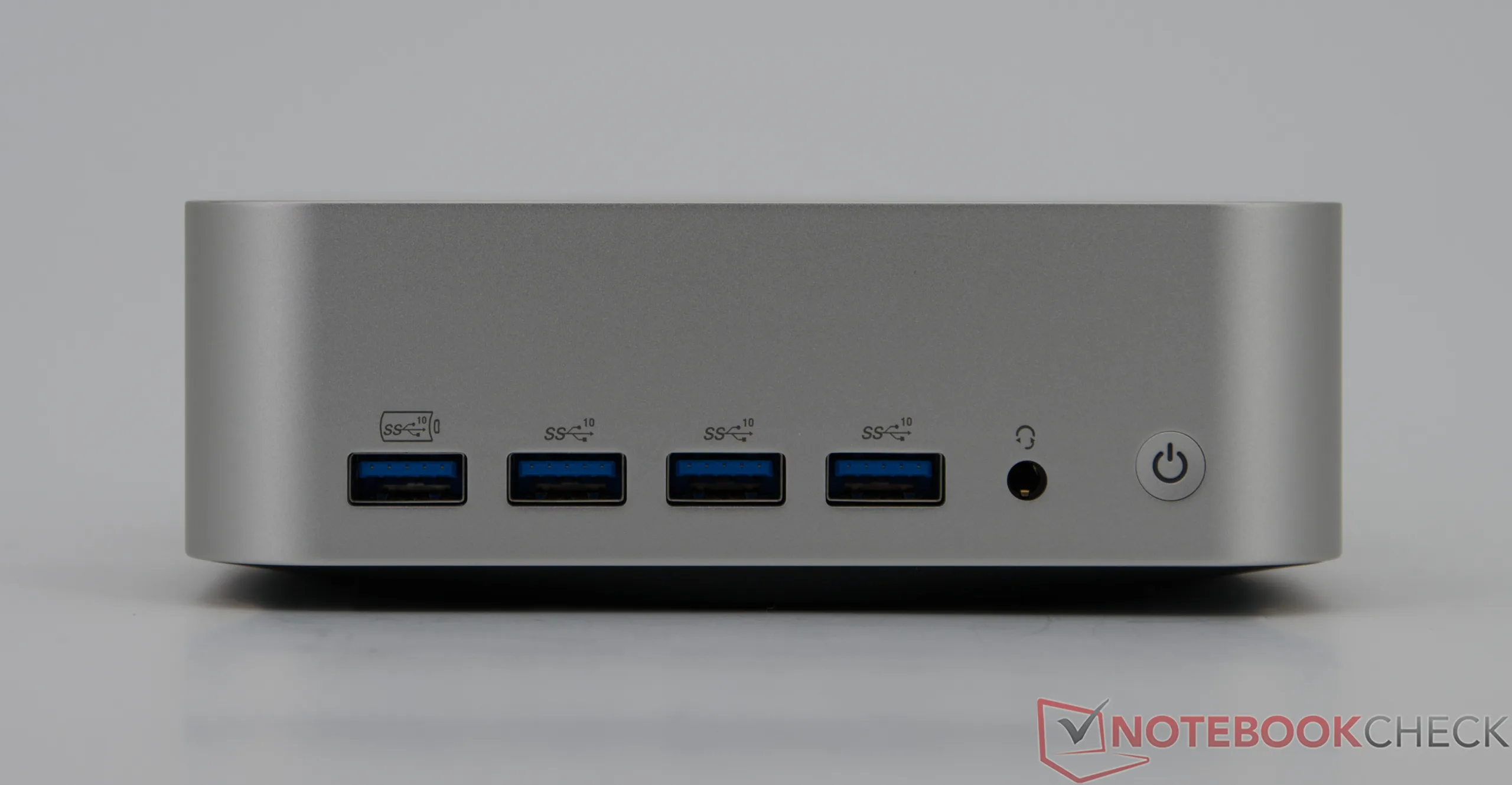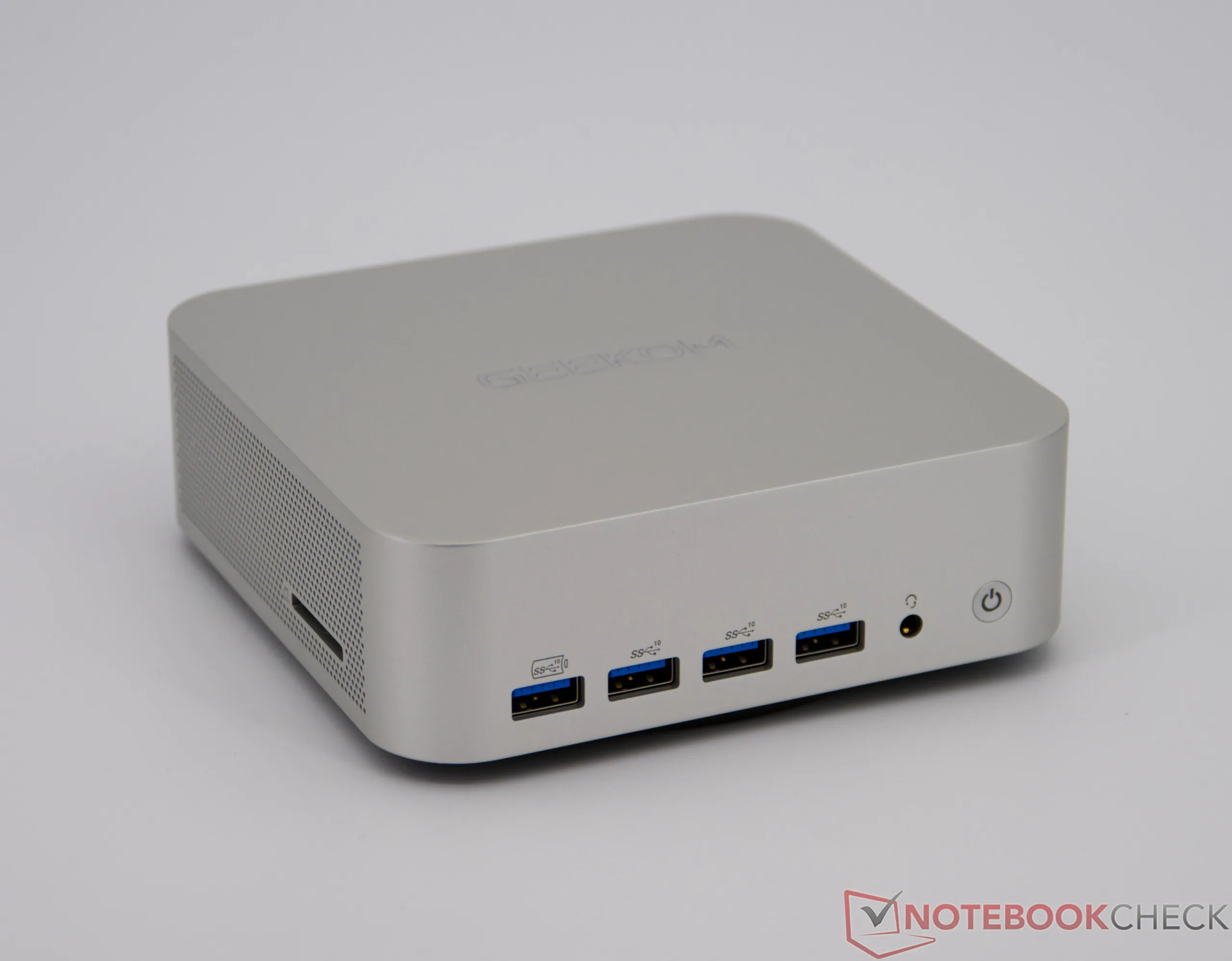 Externt förblir Geekom trogen sitt välbekanta designspråk. Det högkvalitativa aluminiumhöljet är kompakt men erbjuder ändå tillräckligt med utrymme för omfattande anslutningsmöjligheter. Förutom flera USB-portar finns moderna USB4-gränssnitt, HDMI-utgångar och en kortläsare tillgängliga, vilket gör att minidatorn kan integreras flexibelt i befintliga installationer.