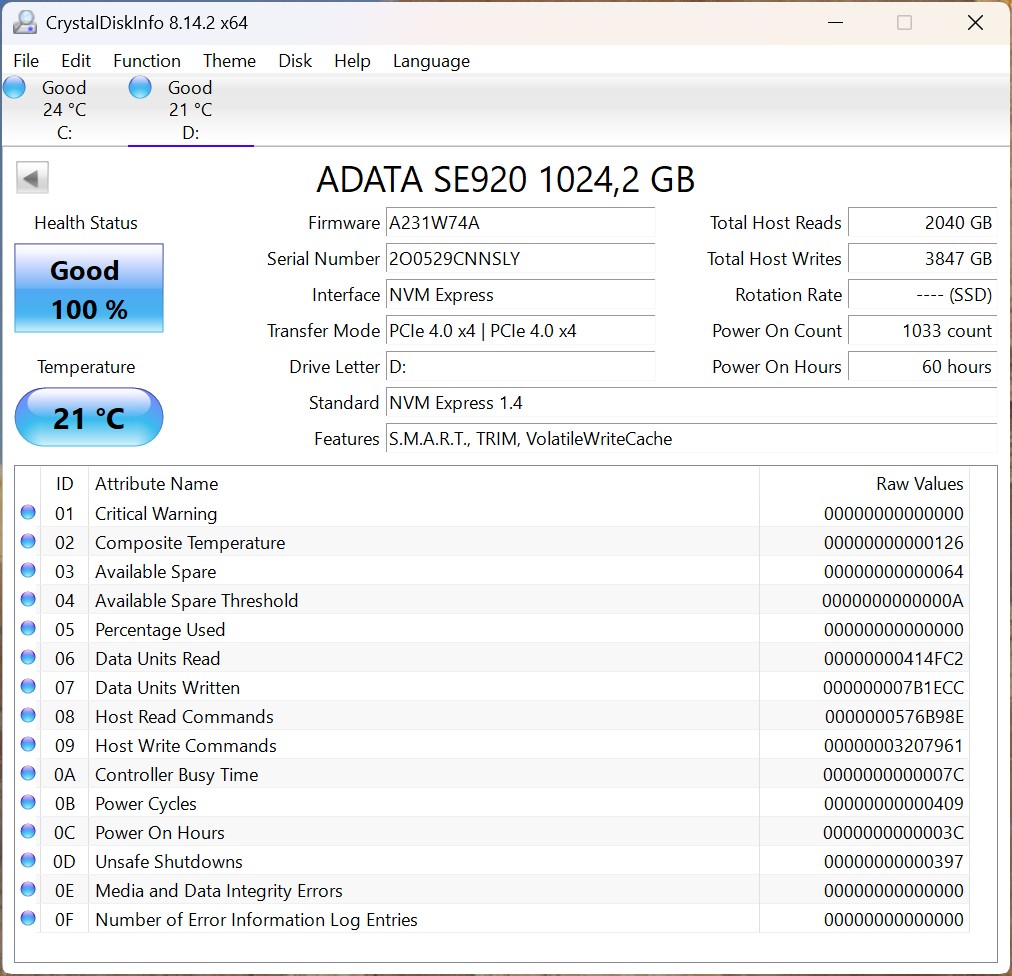 USB4-hastighet (ADATA SE920)