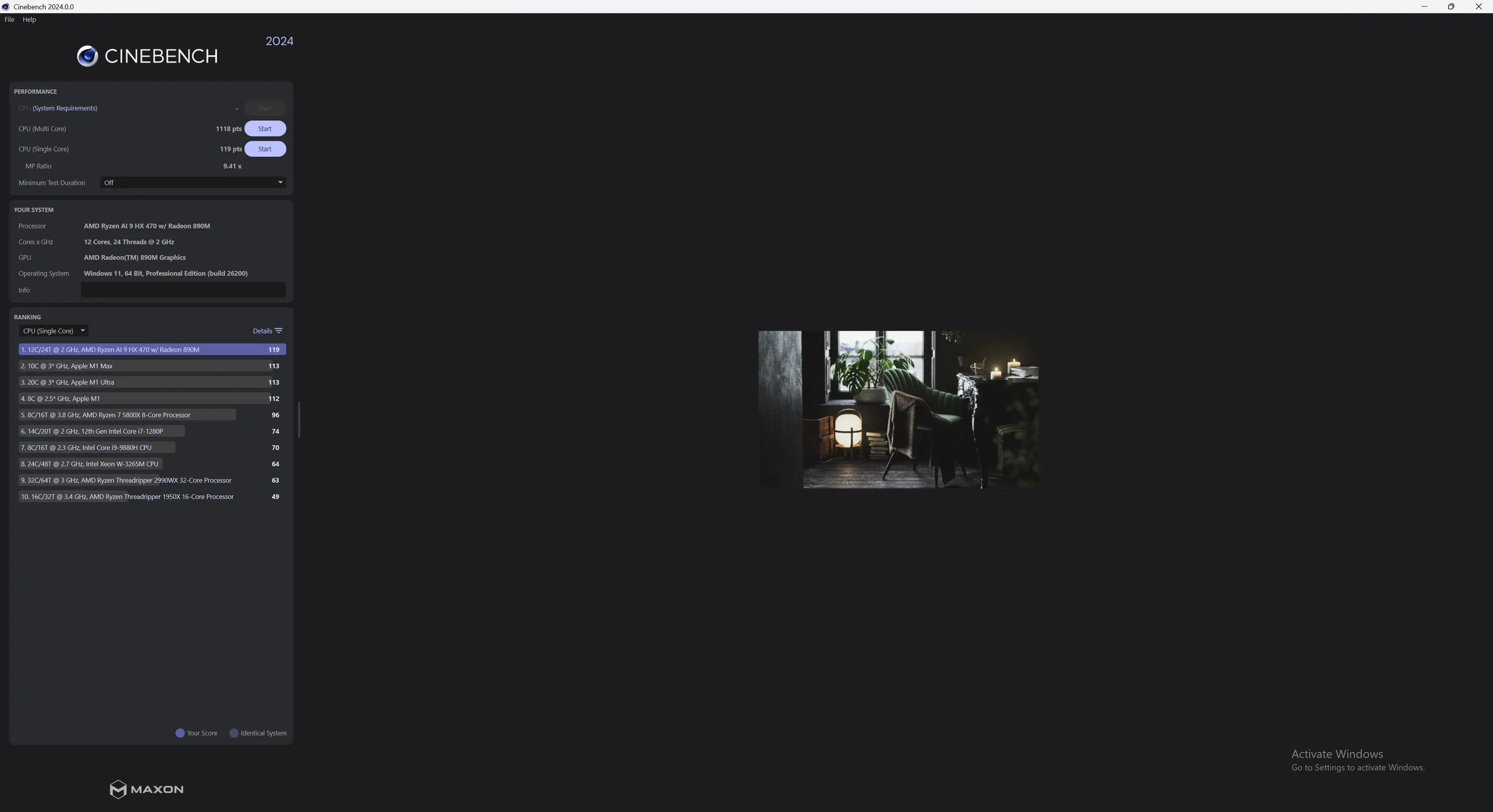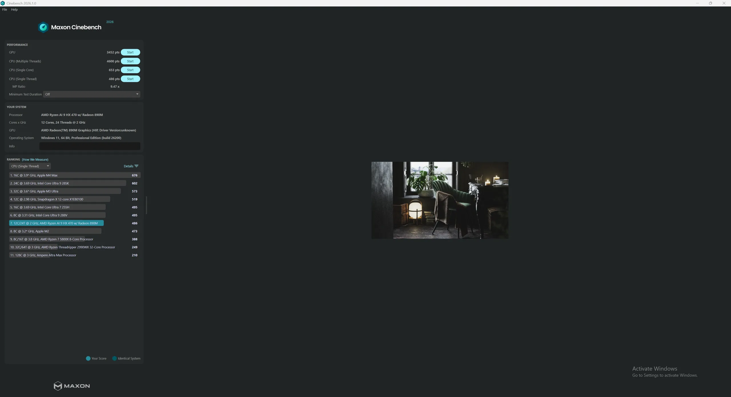 Alla riktmärken utfördes i fabriksinställningarna. Minisforum gör det möjligt att justera prestandaprofilen för AMD Ryzen AI 9 HX 470 i BIOS, men testningen utfördes i fabriksinställningarna med inställningen "Auto".