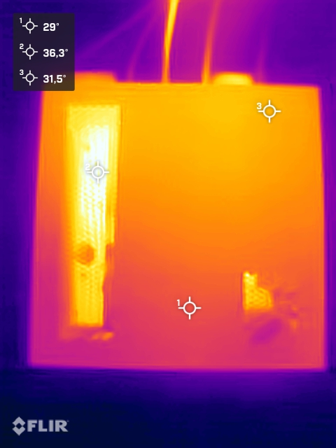 (+) Vid tomgångsbruk är medeltemperaturen för ovansidan 27.9 °C / 82 F, jämfört med enhetsgenomsnittet på 32.4 °C / ### class_avg_f### F.