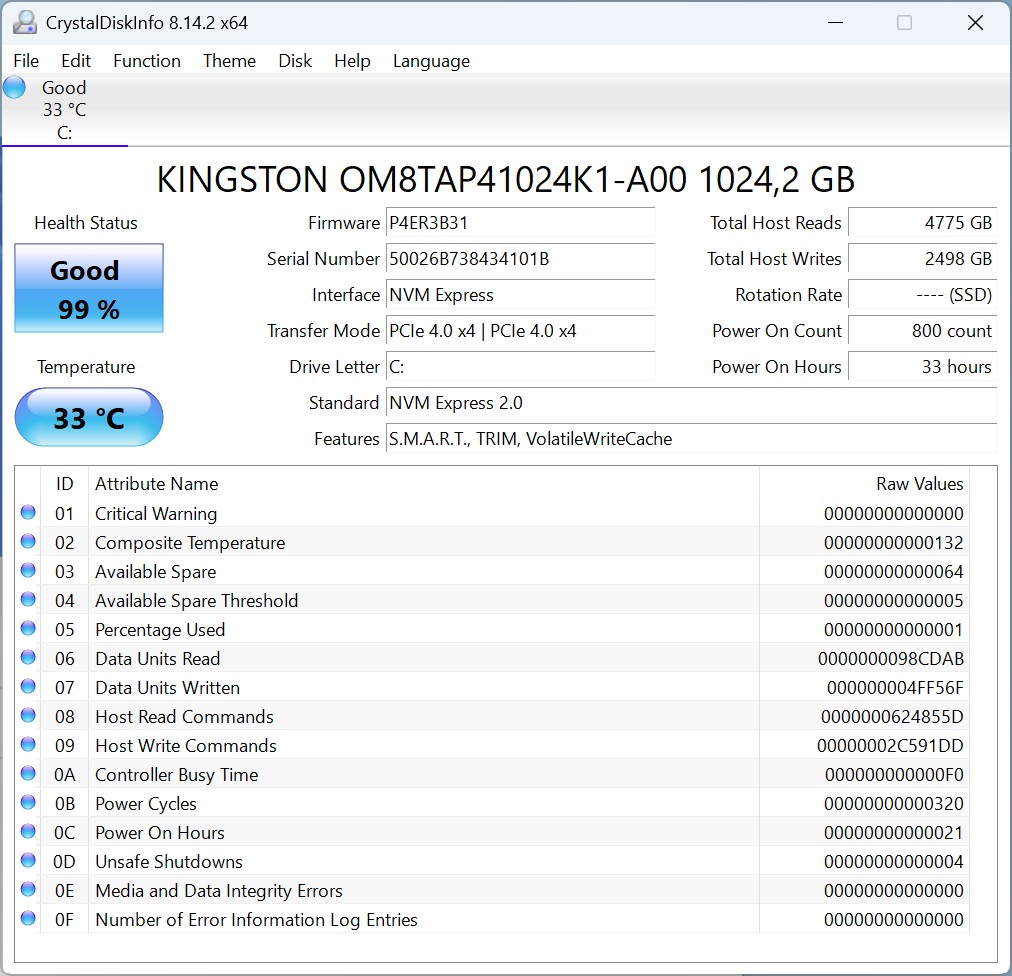 I våra mätningar är Minisforum MS-02 Ultra klart hörbar under full belastning. Även på tomgång arbetar vårt testexemplar hörbart med strax under 39 dB(A) hela tiden. Fläkten i nätaggregatet är ansvarig för detta. Efter samråd med tillverkaren vill de gärna göra förbättringar här så att slutkunderna ska få en tystare enhet. Tyvärr är det inte möjligt att justera fläkthastigheten på nätaggregatet.
