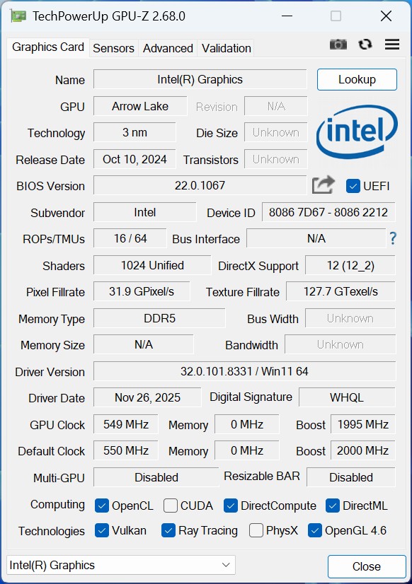 | GMK EVO-T1 Intel Core Ultra 9 285H ⎘ Intel Arc Graphics 140T ⎘ 64 GB Minne, 1024 GB SSD | Amazon: $999.99 Listpris: 999€ | 946 g | 151 x 154 x 73.6 mm | |