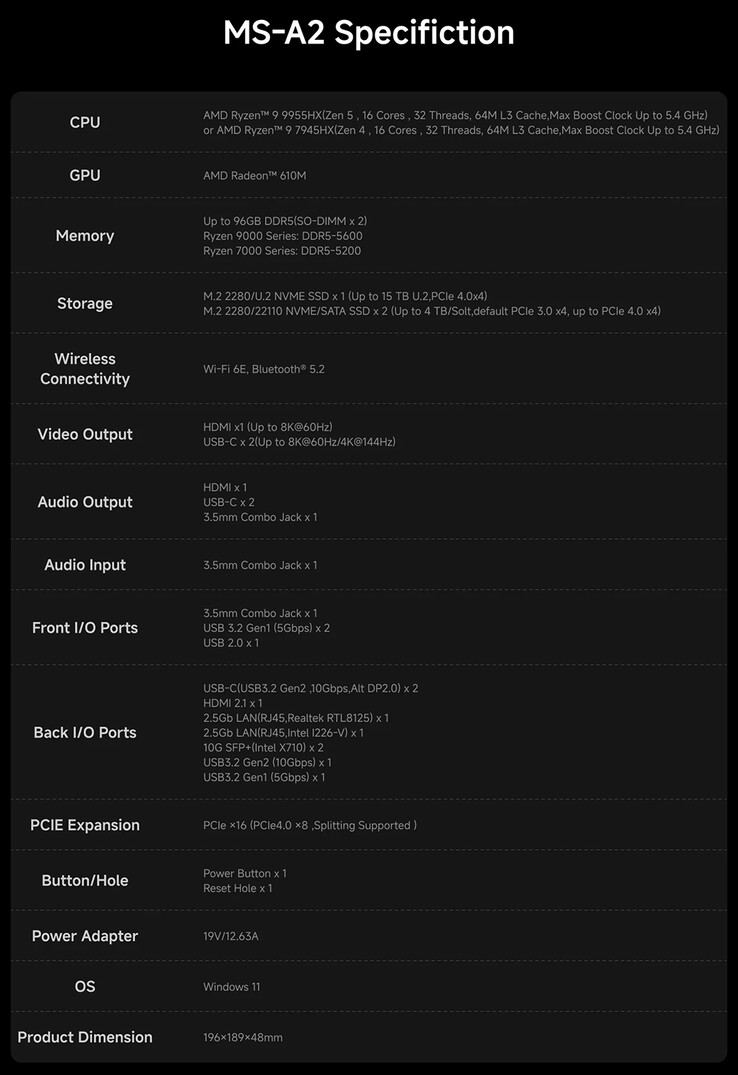 Denna CPU är ett avancerat alternativ från AMD Fire Range-serien, och den har 16 Zen 5-kärnor och Radeon 610M. Även om den iGPU inte är något att skriva hem om, som föregångarenkan MS-A2 utrustas med en diskret GPU (dGPU) tack vare den inbyggda PCIe x16-kortplatsen med stöd för PCIe 4.0 x8.