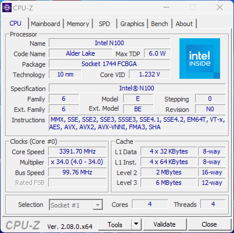 | 73.5 % v7 (old) | 09/2023 | Blackview MP80 N95, UHD Graphics 24EUs (Alder Lake-N) | 214 g | 250 EUR |
