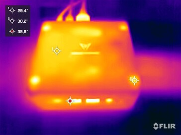(+) Den maximala temperaturen på ovansidan är 36.9 °C / 98 F, jämfört med genomsnittet av 36 °C / 97 F , allt från 21.6 till 69.5 °C för klassen Mini PC.