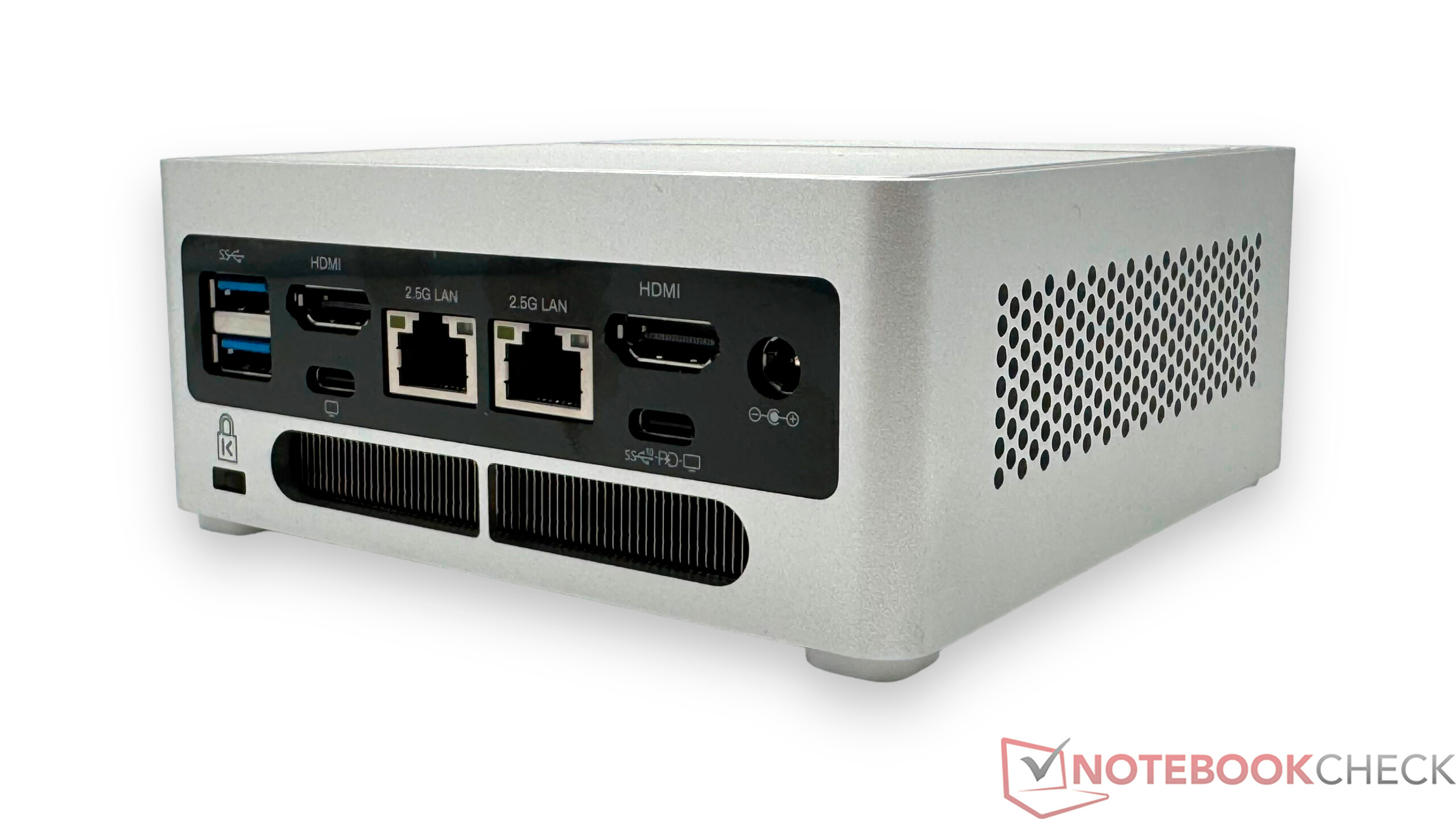 Minisforum har utrustat Venus Series NAB9 med en mängd externa portar som är utspridda på enhetens fram- och baksida. Totalt har minidatorn sju USB-portar, varav tre är av typ C. Tyvärr är de inte USB4-portar. Trots det kan de användas som displayutgångar och tillsammans med HDMI-portarna kan datorn driva upp till fyra skärmar samtidigt. Den maximala upplösningen som stöds är 4K@60Hz.