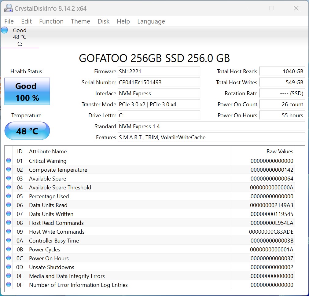 I vårt fall är Minisforum Venus Series UN100D utrustad med en NVMe SSD från Gofatoo. Med 256 GB lagringsutrymme är masslagringen begränsad, och minus operativsystemet har användaren bara cirka 200 GB tillgängligt. Samma modell har redan installerats i Minisforum Venus Series UN100L. SSD-enheten i vårt testexemplar kan dock leverera bättre prestanda tack vare den bättre PCIe-anslutningen. Med detta sagt utnyttjas inte SSD:ns prestanda optimalt, eftersom de inbyggda M.2 SSD-enheterna i Minisforum UN100D tekniskt sett endast är anslutna till PCIe 3.0 x2. Vårt testsystem klarar belastningstestet utmärkt. Inga prestandaförluster är att vänta under kontinuerlig belastning. En andra masslagringsenhet i 2,5-tumsformat kan installeras i Minisforum Venus Series UN100D. Den nödvändiga anslutningskabeln är redan inkluderad i enheten.