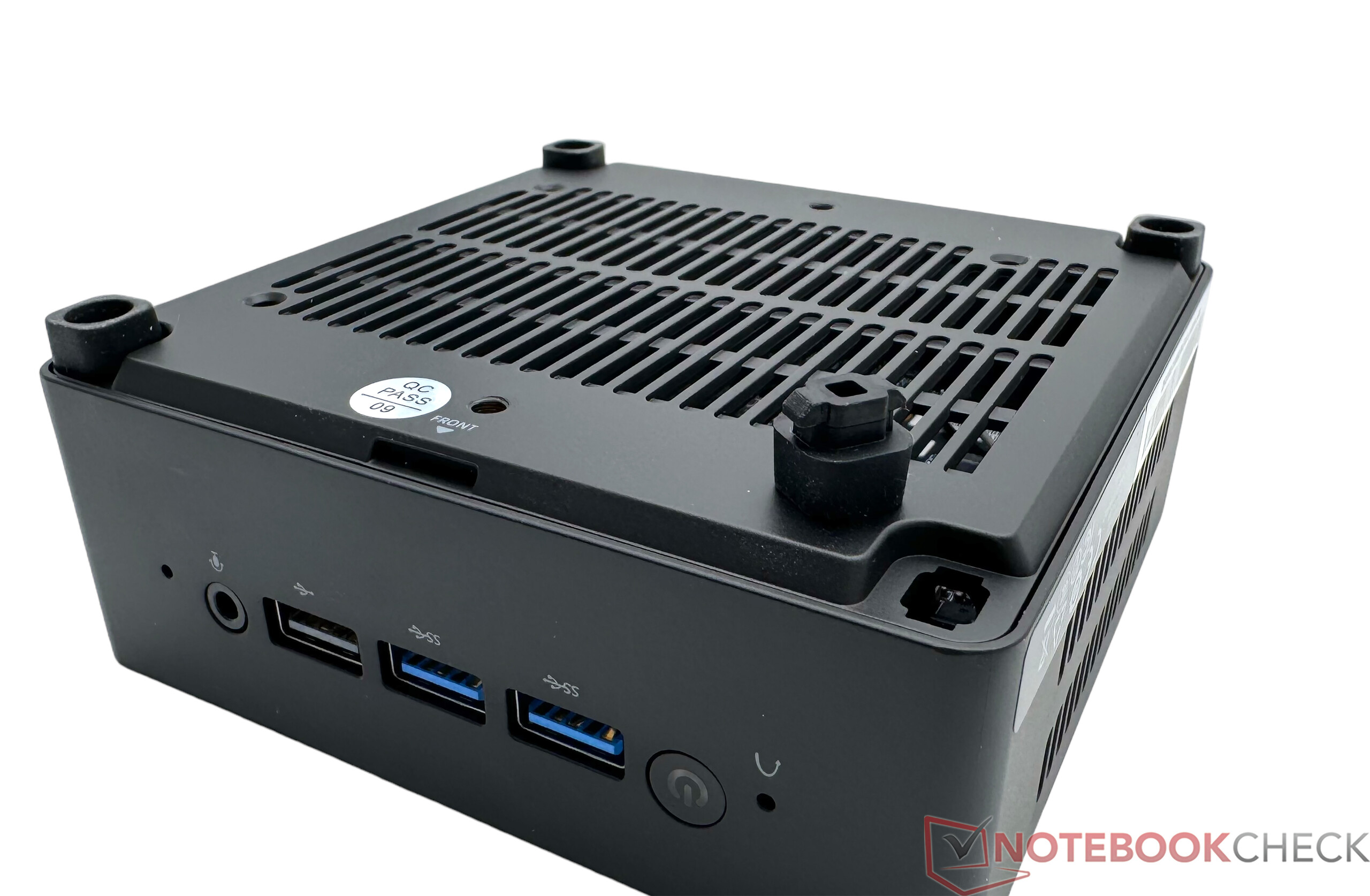 Minisforum Venus Series UN100D är huvudsakligen tillverkad av plast. På grund av prissättningen kan du inte förvänta dig mer här. Ändå använder Minisforum en intern metallstruktur för att förstärka höljet. När det gäller färg hålls Minisforum UN100D i vanlig svart. Lyckligtvis har tillverkaren avstått från glansiga ytor, som ändå repas snabbt. Det finns inget att kritisera när det gäller utförandet. Utrymmeskravet på 11,5 × 11,0 centimeter är ungefär jämförbart med konkurrenterna. Endast Blackview MP80 har en mycket mer kompakt design. Med bara 367 gram är vårt testprov ganska lätt och är en av de lättaste enheterna här. Själva strömförsörjningsenheten väger ytterligare 177 gram.