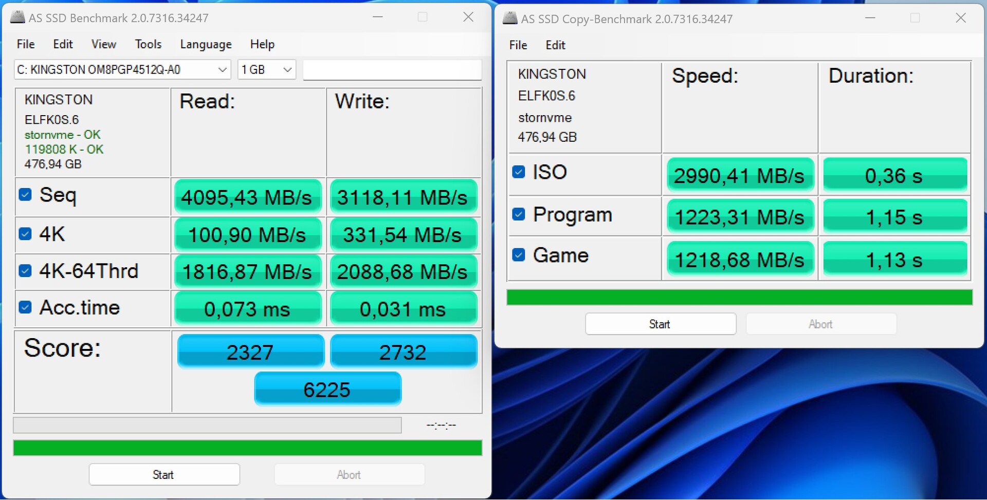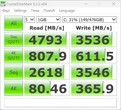 Minisforum har installerat en Kingston 512 GB NVMe SSD i Venus Series UN1245. Minisforum utrustar även några av sina andra minidatorer med denna modell och vi var redan imponerade av dess prestanda i Minisforums Venus Series NAB6. I vårt recensionsexemplar observerade vi bättre prestanda vilket innebär att UN1245 nästan säkert är bättre i riktmärkena. Vid daglig användning är SSD-prestandan dock ganska andra klassens. Ändå välkomnar vi att tillverkaren tar steget mot att välja solida, underbart presterande SSD-enheter som tidigare uppnådde goda resultat. När det gäller kylning tog Minisforum en ny riktning med NAB6och installerade en kylare som inkluderade en liten fläkt. Men med vår Minisforum Venus Series UN1245 står vi återigen inför en konventionell passiv kylare. Detta är inte tillräckligt för att hålla SSD-enhetens prestanda stabil under kontinuerlig belastning.