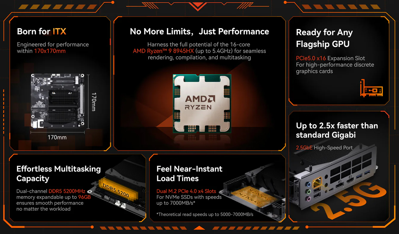 Minisforum har formellt introducerat ett nytt MoDT-moderkort, BD895i SE. Det är utrustat med AMD Ryzen 9 8945HX, en kapabel CPU från Dragon Range Refresh med 16 Zen 4-kärnor. Den kan paras ihop med upp till 96 GB DDR5 RAM som körs i 5 600 MHz genom de två kortplatserna.