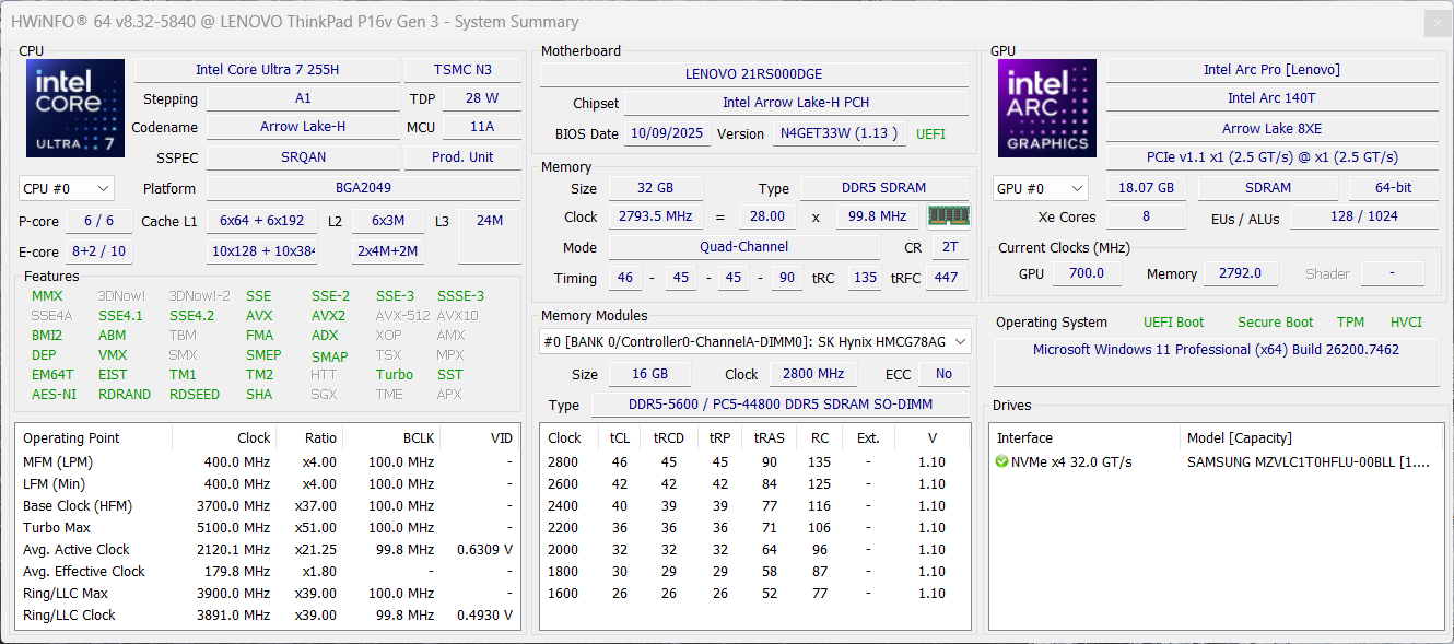 | Lenovo ThinkPad P16v G3 21RS000DGE Intel Core Ultra 7 255H ⎘ NVIDIA RTX PRO 2000 Blackwell Generation Laptop ⎘ 32 GB Minne, 1024 GB SSD | Amazon: 1. $2,299.00 Lenovo ThinkPad P16v Gen 2 I... 2. $849.99 Lenovo ThinkPad E16 Gen 3 Bu... 3. $1,623.55 Lenovo ThinkPad P16s Gen 3 2... Listpris: 2825€ | 2.2 kg | 19.6 mm | 16.00" 1920x1200 IPS | |
