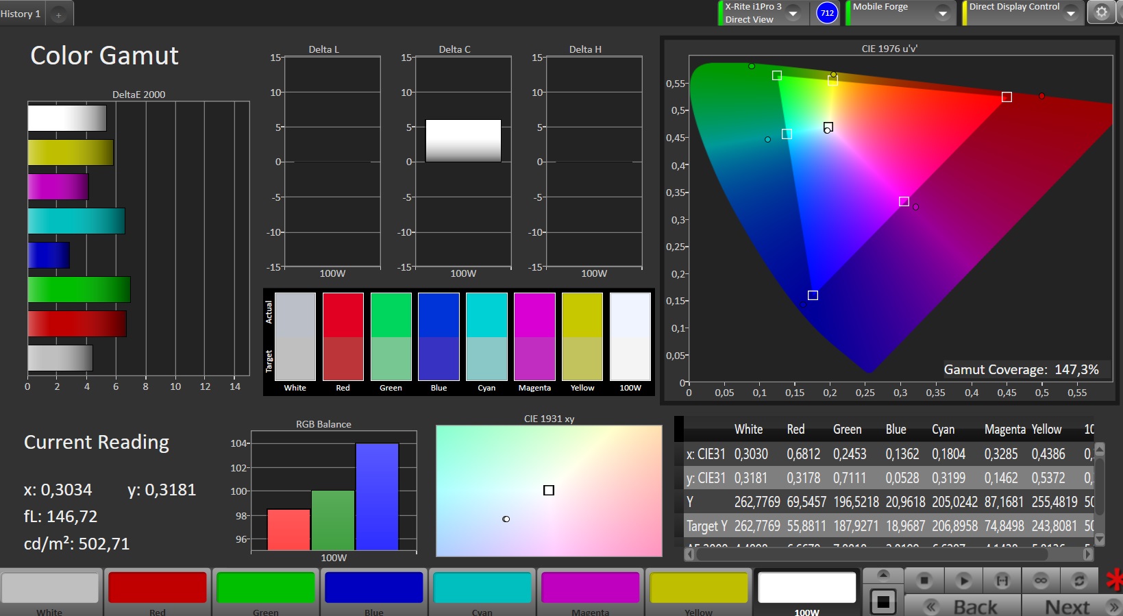 ΔE ColorChecker Calman: 1.28 | ∀{0.5-29.43 Ø4.78}