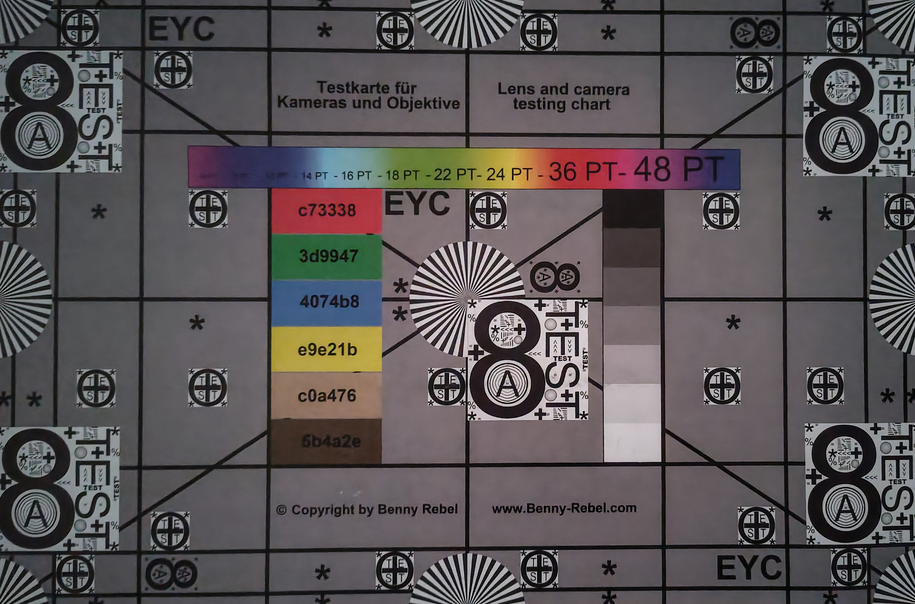 | Colorchecker dE 2000 max. * | 3.47 | 3.14 10% | 2.38 31% | 5.63 -62% | 3.5 -1% |