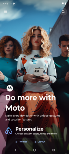 Motorola har endast använt en minimalt modifierad Android 14 som bas för sitt operativsystem. De allra flesta tilläggsfunktioner har lagts ut på separata appar, vilket innebär att de kan hållas uppdaterade även utan att systemet behöver uppdateras.