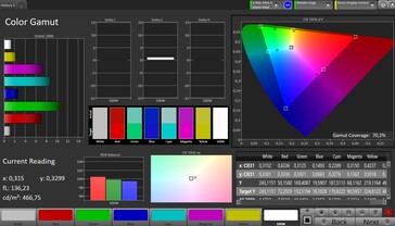 Storleken och upplösningen på Motorola-telefonens P-OLED-huvudskärm har inte ändrats jämfört med sin föregångare: Det är fortfarande en 6,9-tums skärm med en upplösning på 2.640 x 1.080 pixlar. Det som har förändrats är dock dess ljusstyrka. Vi noterade redan nästan 1 100 cd/m² när vi visade en helvit skärm och detta klättrade upp till 2 758 cd/m² när vi visade mindre utdrag (APL 18) - detta är mycket nära de utlovade 3 000 cd/m². Det innebär att även stora skillnader i ljusstyrka och HDR-innehåll återges på ett bra sätt på displayen.