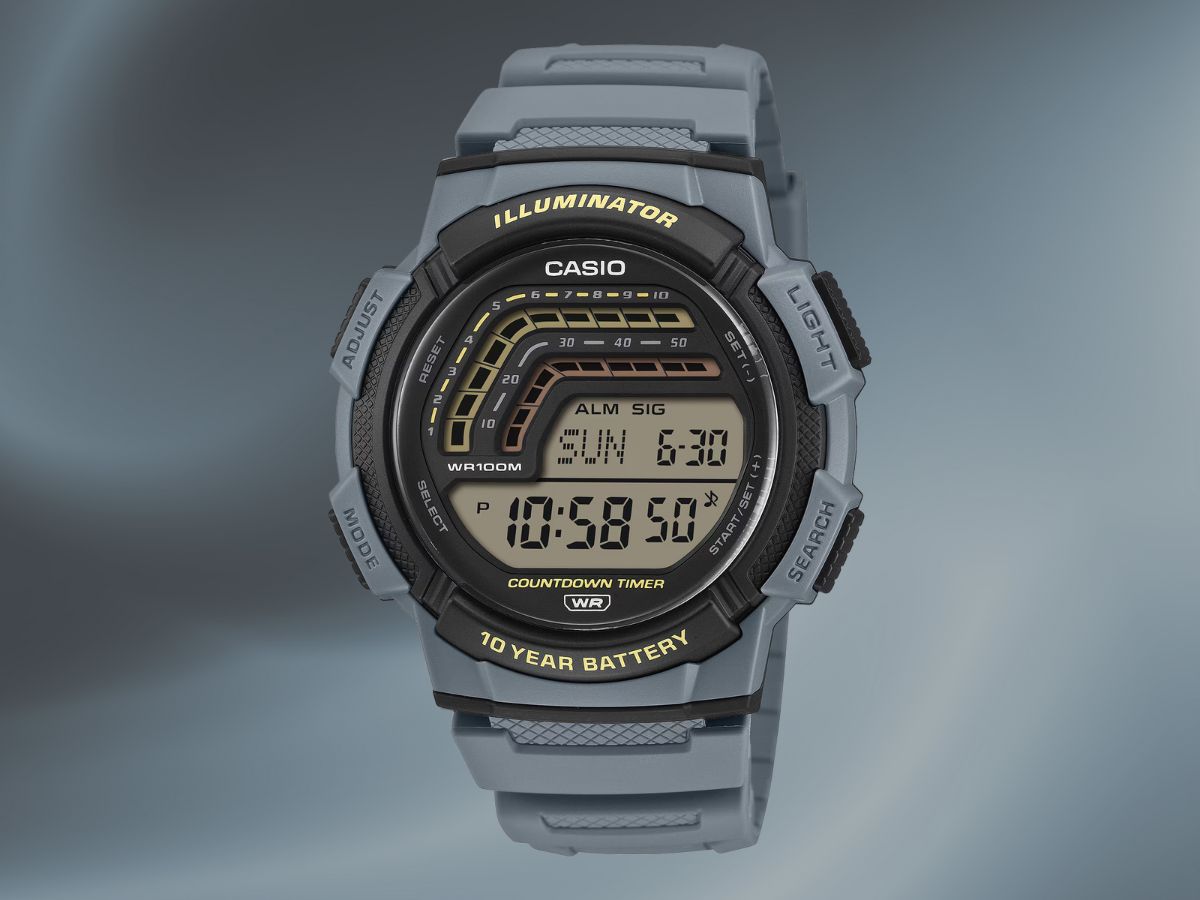 Casio WS1800 beskrivs som en multifunktionell digitalklocka med en "stor grafisk display i retrostil". Överst på urtavlan finns två skalor som sägs göra det lättare att läsa av nedräkningstimern eller stoppuret. Under detta finns en större display med ljus bakgrund, som visar tid, datum och veckodag.