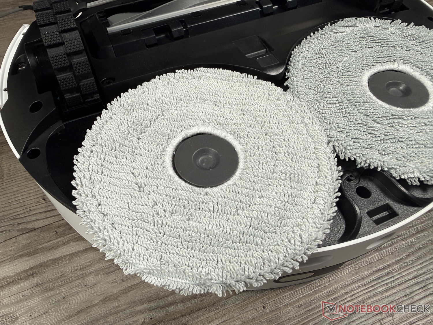 Detta beror delvis på avsaknaden av varmvattenrengöring av mopparna. Trots detta rengjordes mopparna i allmänhet noggrant under våra dagliga tester. Rengöringsstationen nådde bara sina gränser vid grövre smuts. Vid behov kan mopparna rengöras i tvättmaskinen.