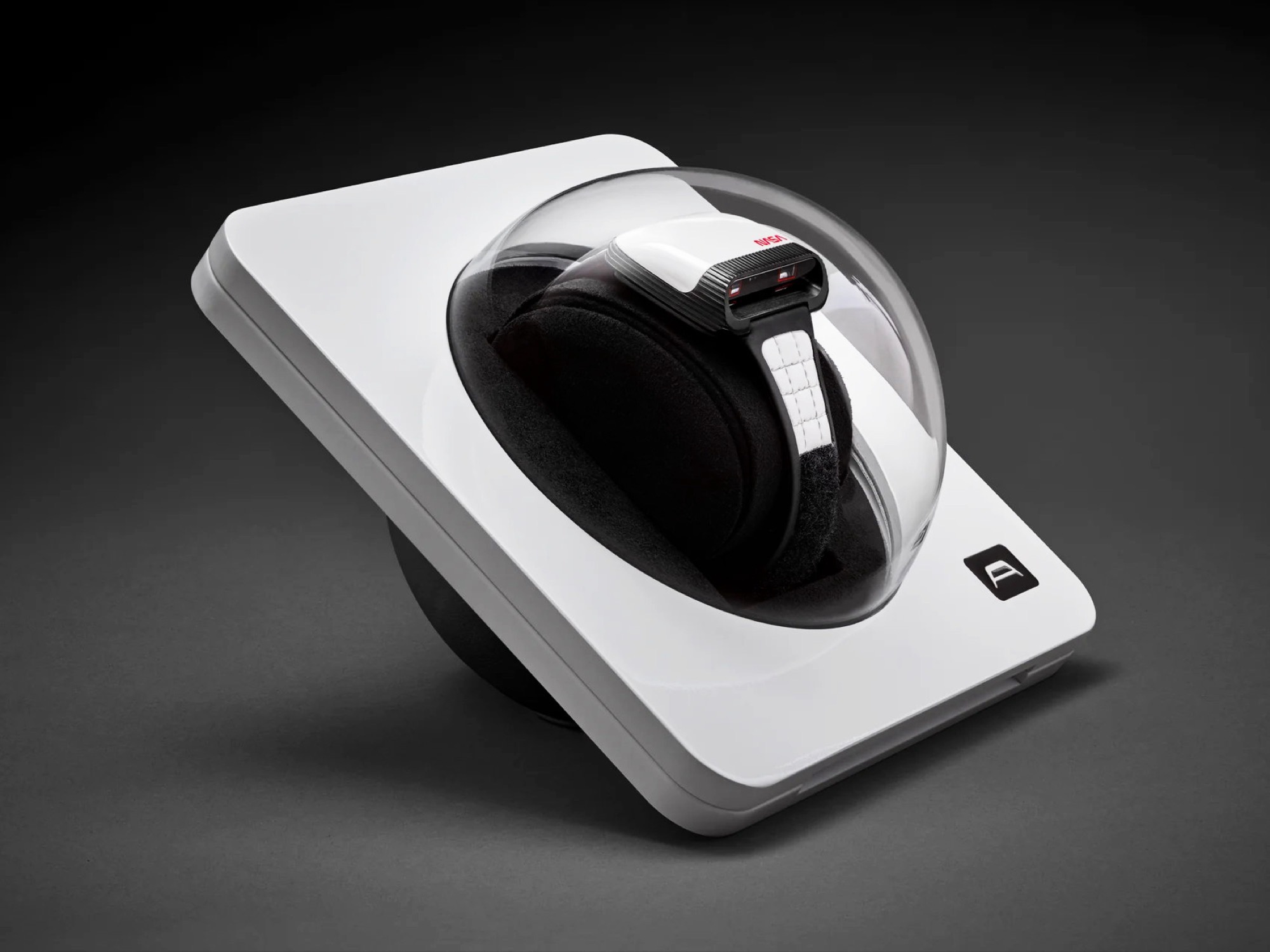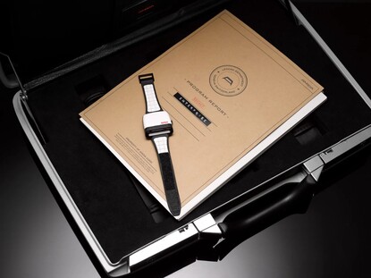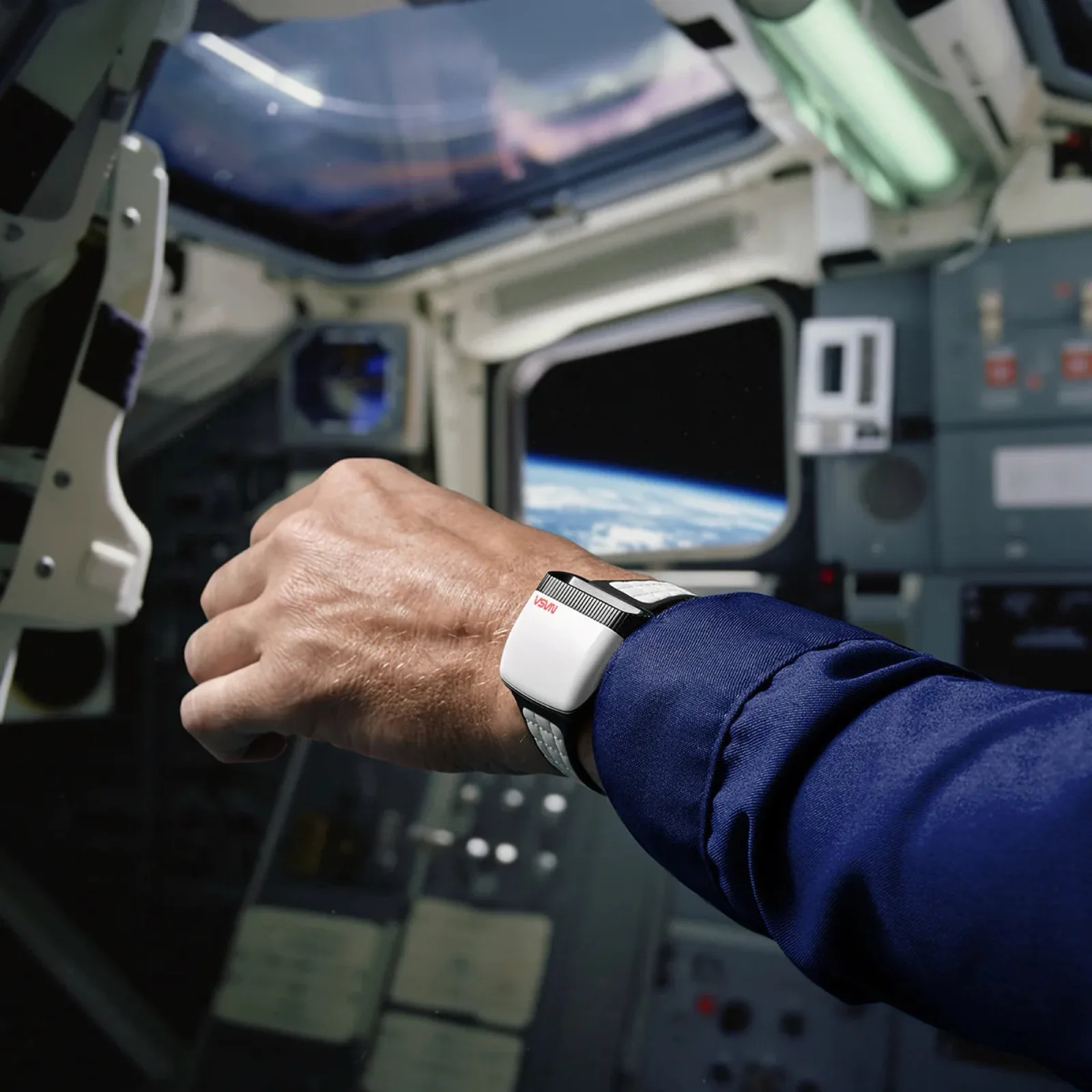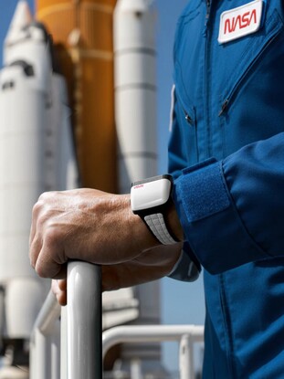 Armbandet består av vitt läder med kardborreknäppning, som används av astronauter, vilket gör att armbandets längd kan justeras steglöst. Baksidan är tillverkad av rostfritt stål och ger en bild av Soprod Newton P092-urverket, som är utrustat med 23 rubiner och bara behöver dras upp var 44:e timme. Den nästan kvadratiska boetten har en kantlängd på 39 millimeter och en höjd på 15,6 millimeter med en vikt på 90 gram