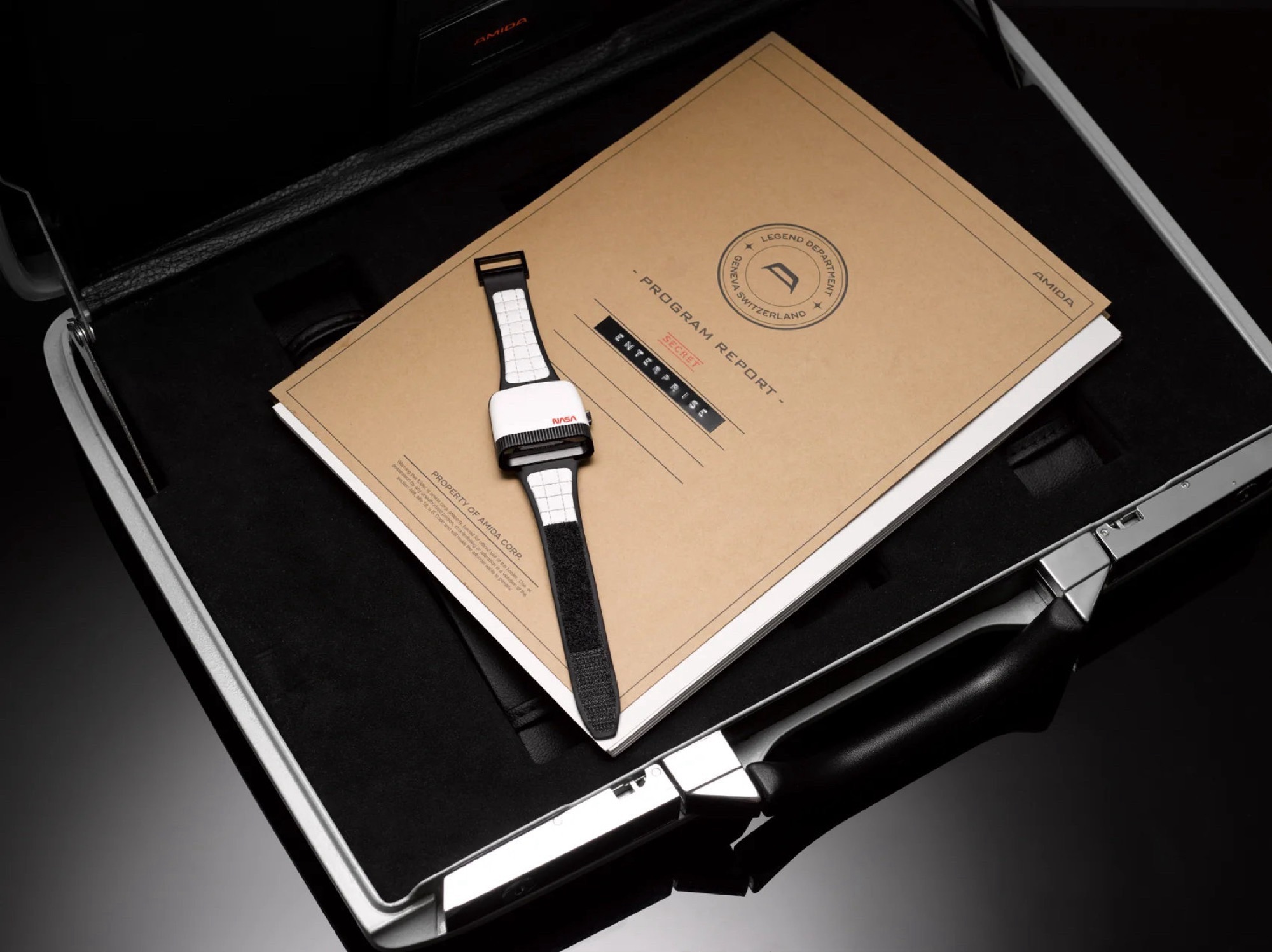 Amida Digitrend NASA Tribute Limited Edition är en nyutgåva av Amida Digitrend från 1976, men den nya schweizisktillverkade klockan har en helt ny design. Den blanka vita keramikboetten med röd NASA-logotyp och den sfäriska, genomskinliga plastförpackningen är en anspelning på rymdfärjorna i Apolloprogrammet.