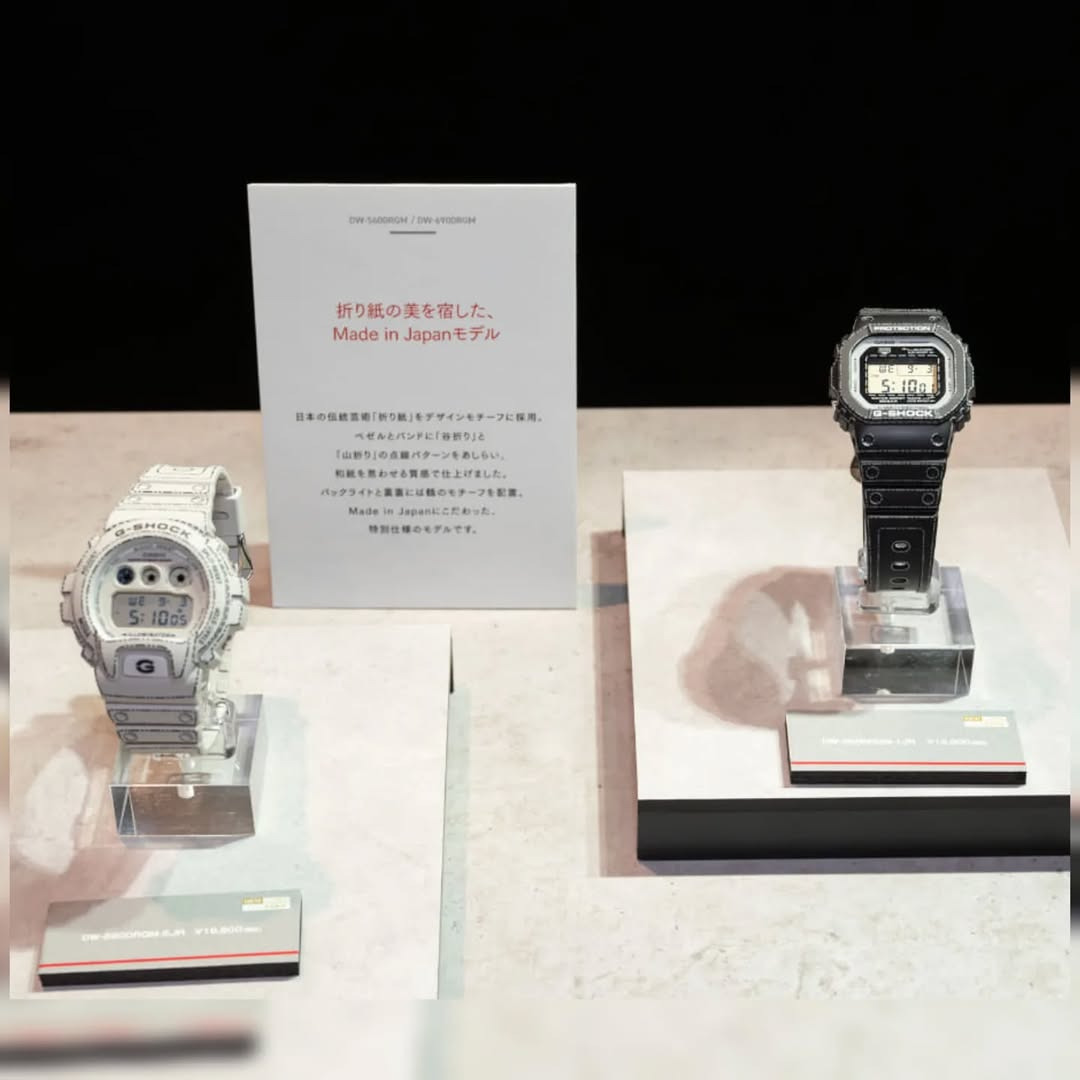 The specs of the two watches match those of the standard DW‑5600/6900: 200‑meter water resistance, resin cases/bands, stopwatch, countdown, alarms, and auto‑calendar, with "Made in Japan" mentioned alongside the themed box that resembles folded paper panels. Similar to other early November launches, this duo is also expected to be available sometime this November.