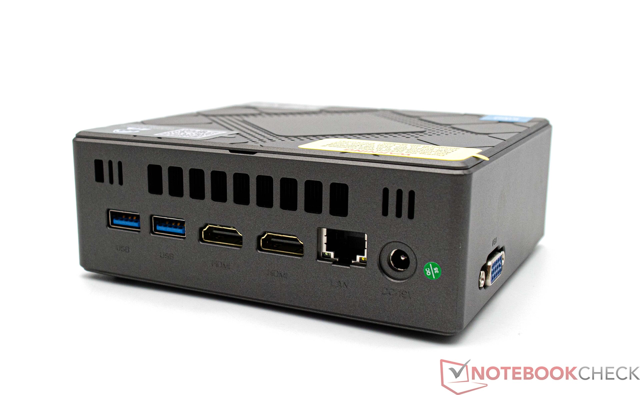 NiPoGi CK10 har ett bra urval av externa portar: Fem USB- och två HDMI-portar är fullt tillräckligt. Om du behöver en VGA-anslutning har du tur - NiPoGi CK10 har en. Den analoga ljudutgången finns på datorns vänstra sida. Denna anslutning används knappast längre.