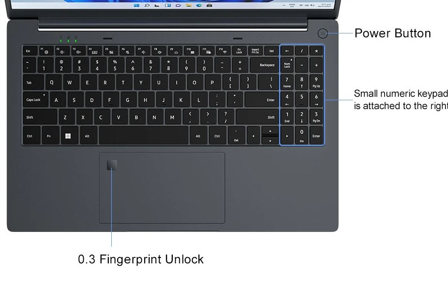 Ninkear A15 Air väger 1,75 kg och är 1,9 cm tjock och har en 15,6-tums skärm med 1080p-upplösning, 60 Hz uppdateringsfrekvens och 45% NTSC (~65% sRGB) gamut-täckning. Den har också två USB-C-portar (båda med videoutgång), ett HDMI-gränssnitt, en Ethernet-port och en minneskortläsare. Andra anmärkningsvärda funktioner inkluderar Wi-Fi 5-stöd, en fingeravtryckssensor och en inbyggd webbkamera.