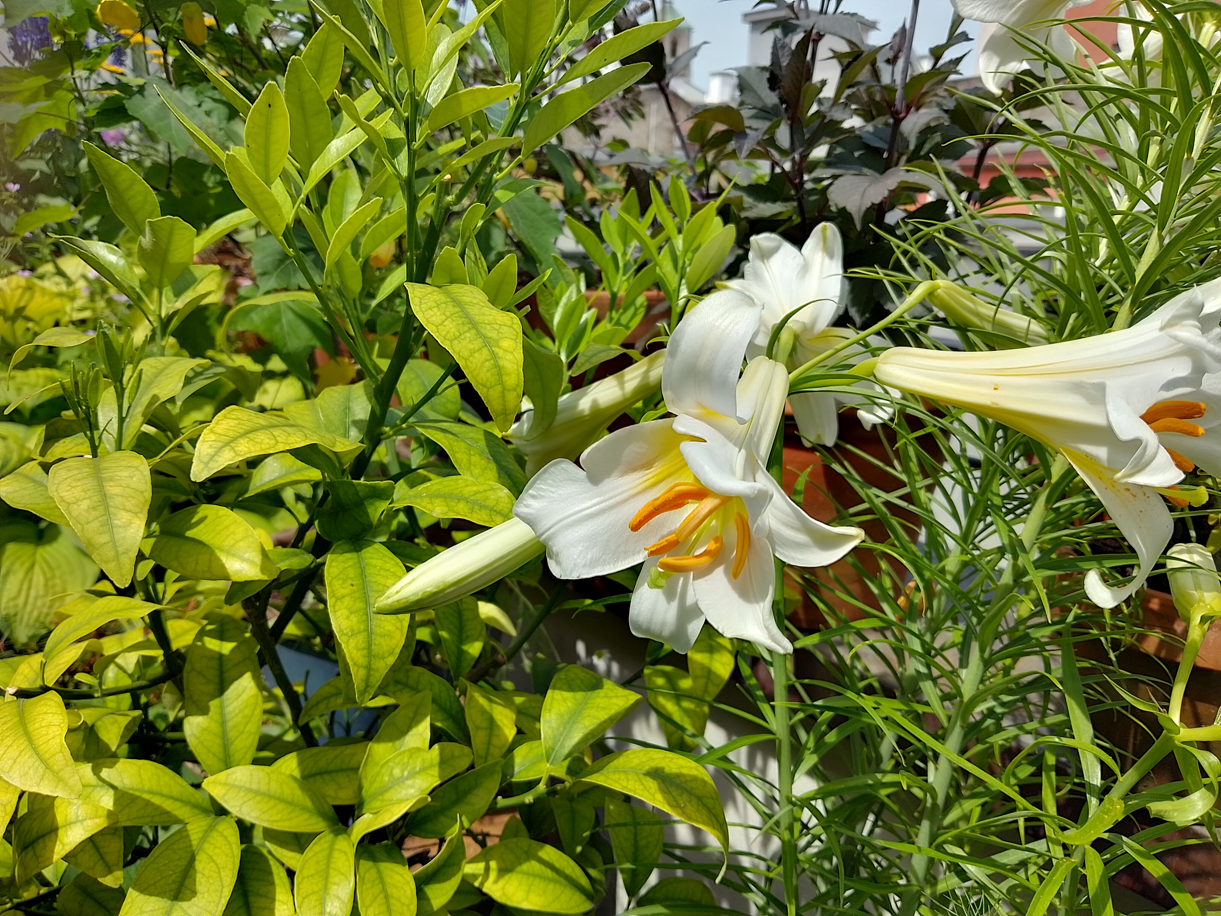 Kameran kan ta 50-megapixelbilder men bara i ett speciellt läge; som standard används 1/4 av upplösningen och större pixlar skapas för detta. Medan bilden av växterna fortfarande ser ganska användbar ut, med acceptabel detaljskärpa och dynamik för en så billig telefon, täcker en konstig gul dimma omgivningsbilden. Detaljer visas dock fortfarande anständigt för en sådan billig telefon. I svagt ljus minskar skärpan avsevärt och du kan knappast känna igen någonting i mörka områden.