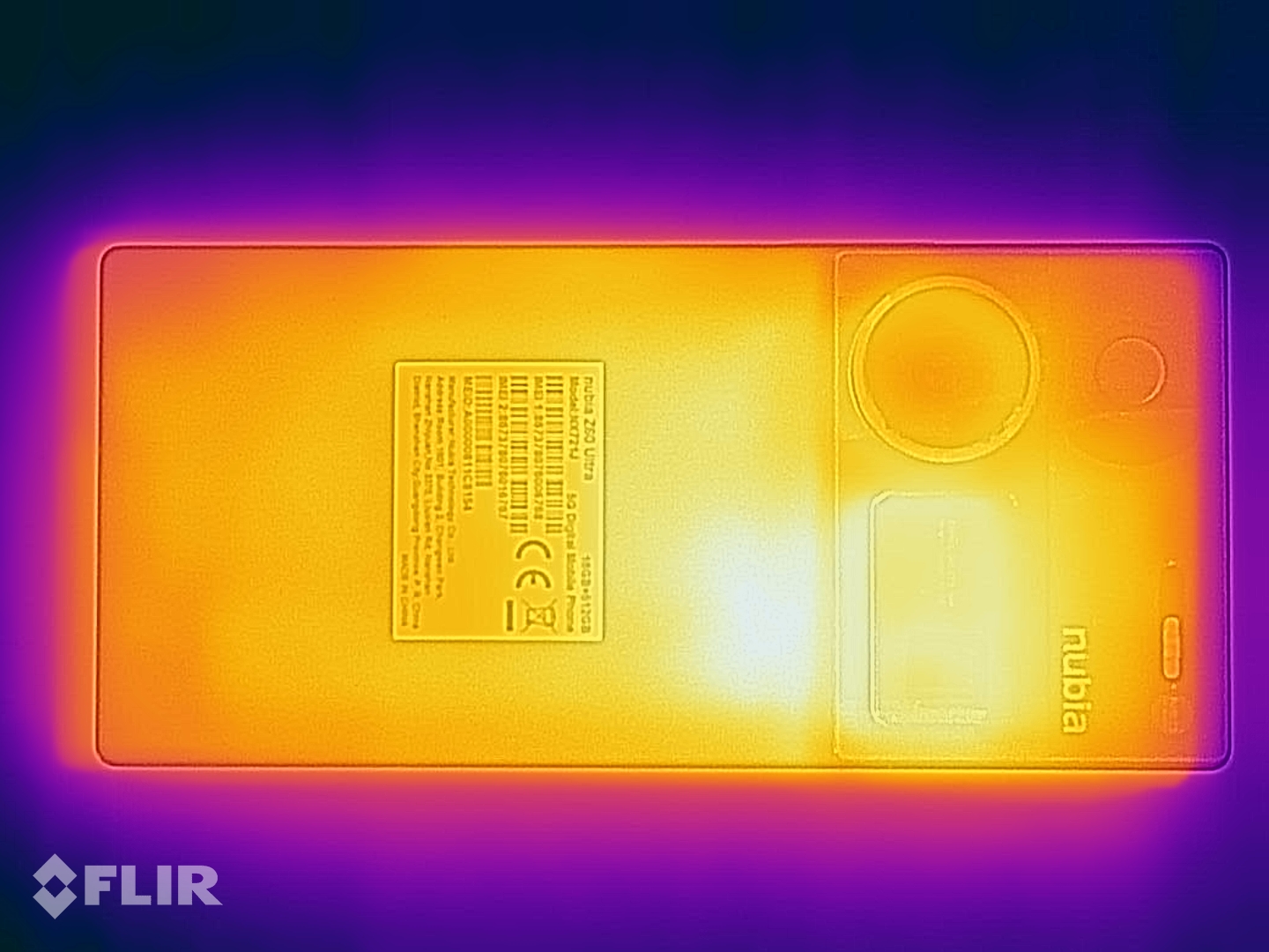 Hudtemperaturerna på Nubia Z60 Ultra kan stiga till en hög nivå under belastning. Detta hände trots att vi redan var tvungna att minska inställningarna till ren CPU-belastning i Burnout Benchmark, eftersom appen annars skulle krascha.