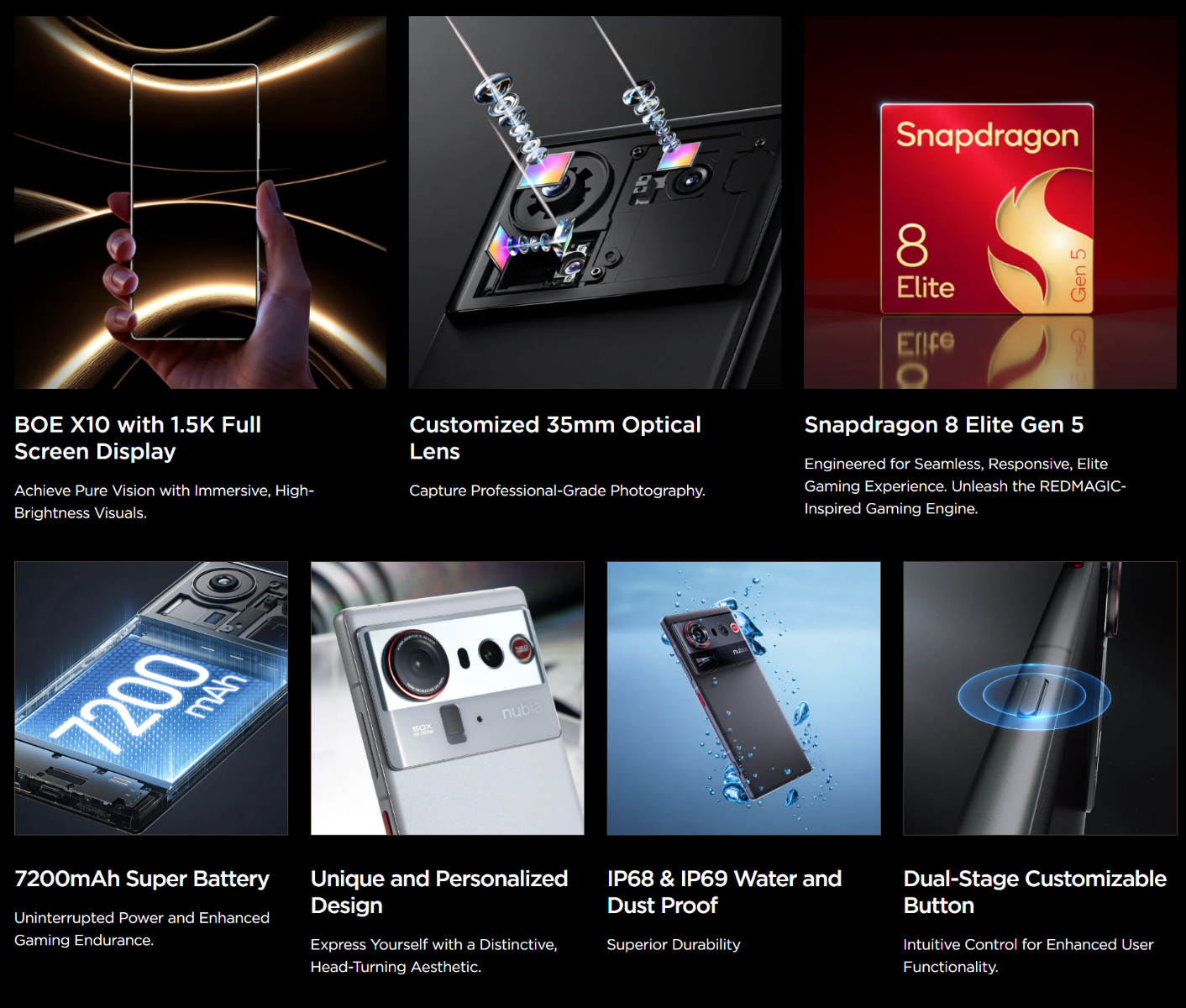 Genom att ange en e-postadress får du en kupongkod på 20 pund, 20 euro och 30 dollar, samt en laddare och ett skyddsfodral för dem som förbeställer en Nubia Z80 Ultra. För närvarande hoppas Nubia kunna påbörja den allmänna försäljningen den 3 december. Baserat på infografiken nedan kommer den globala versionen av Nubia Z80 Ultra inte att skilja sig från den kinesiska motsvarigheten i några större områden. Vänligen se vår artikel om lanseringen av Nubia Z80 Ultra för fullständig information om hårdvaran.