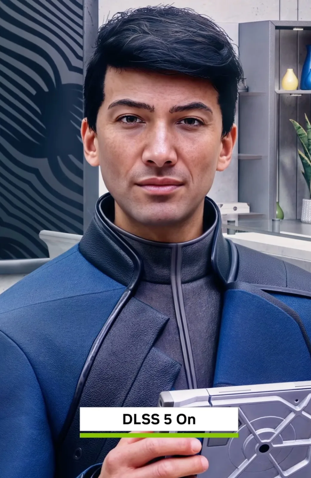 Vid lanseringen kommer tekniken även att köras på system med ett grafikkort, men den här demoinstallationen tyder på att DLSS 5 kommer att vara reserverad för avancerade grafikkort. DLSS 5 är inte avsedd att ändra geometrin eller texturerna i spelen, men spelen bör se betydligt mer realistiska ut när DLSS 5 är aktiverat tack vare AI-genererad belysning. Som jämförelsebilden nedan visar kan DLSS 5 dock förändra utseendet i sådan utsträckning att karaktärer i spel knappt går att känna igen