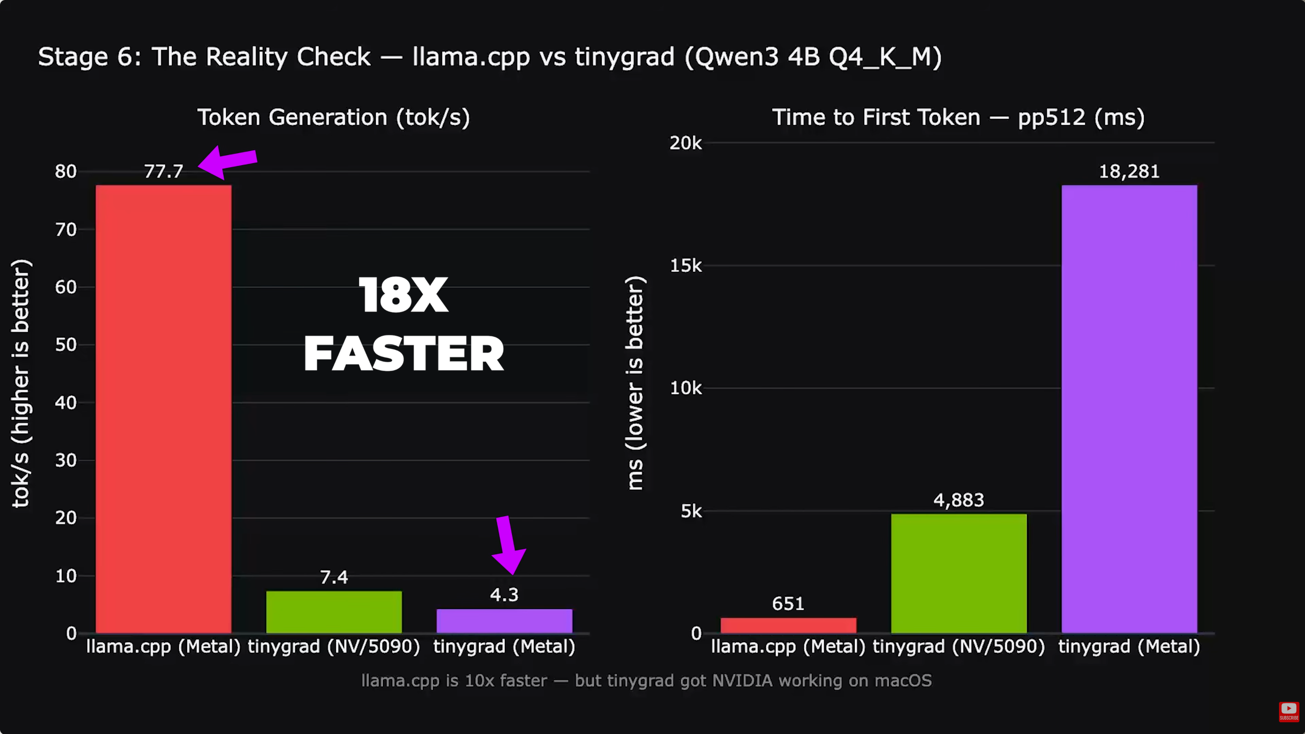Anslutningen är stabil, men den aktuella programvarustacken är i ett tidigt skede. Drivrutinen förlitar sig på Tiny Grad-kompilatorn snarare än på inbyggda Metal- eller CUDA-optimeringar. Detta skapar ett prestandagap under tunga beräkningsuppgifter. När vi körde Llama 3.1 8B-modellennådde installationen ungefär 7,48 tokens per sekund. Även om detta är en stor vinst för kompatibiliteten, är det fortfarande långsammare än native Llama CPP on Metal, säger Alex, som är nästan tio gånger snabbare på motsvarande hårdvara.
