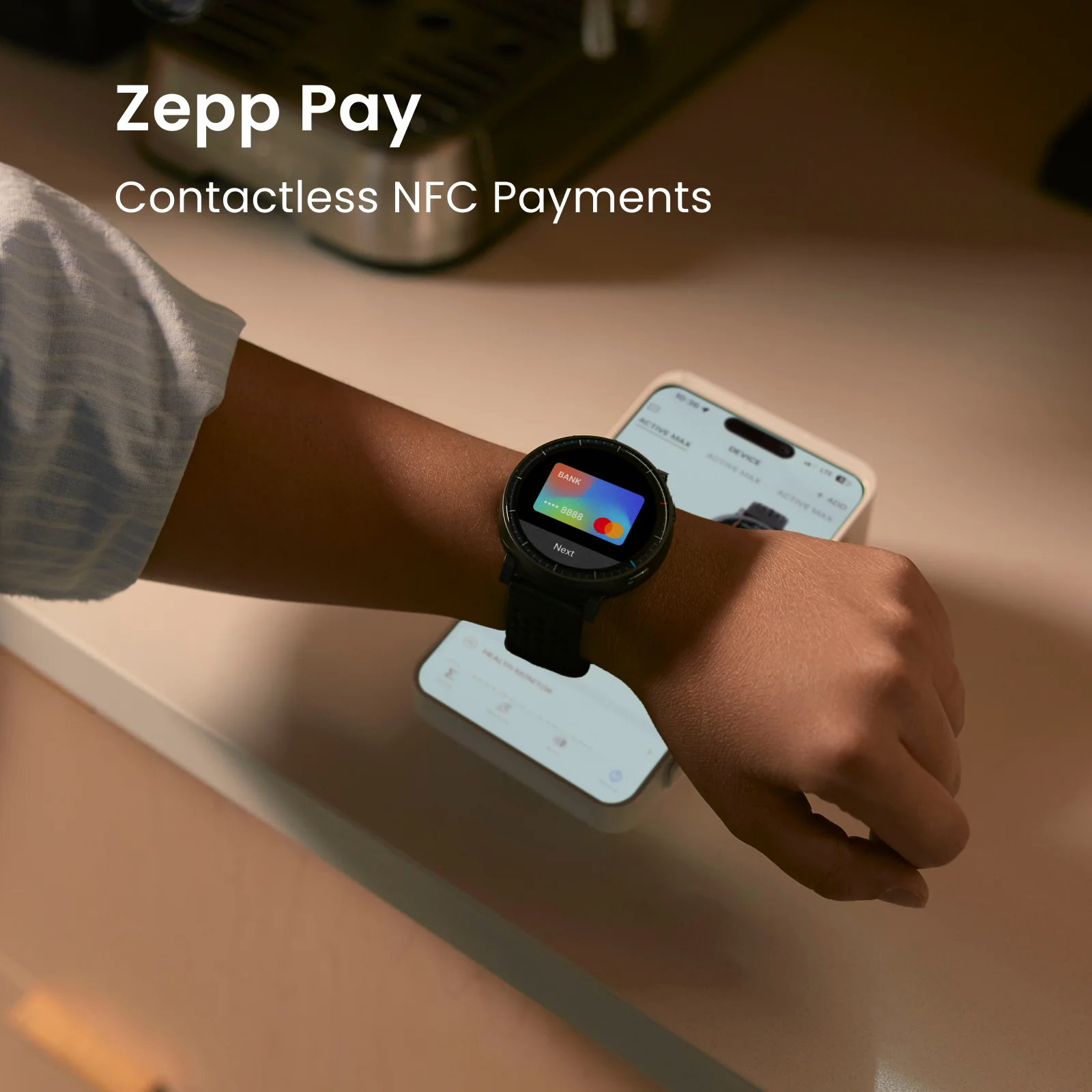 Nu, en utkast till listning för Amazfit Active Max smartwatch verkar ha bekräftat fler av dess funktioner i en serie bilder (nedan). Från Quandts icke namngivna källa visste vi redan att den outgivna bärbara enheten har en 1,5-tums AMOLED-skärm och 4 GB minne för att lagra kartor och musik. De nyligen upptäckta bilderna indikerar att den också kommer att stödja Zepp Pay kontaktlösa betalningar, och att den bör fungera i cirka 25 dagar på en enda laddning tack vare sitt 576 mAh-batteri.