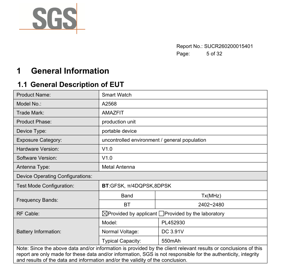 Till exempel innehåller Amazfit A2568 ett 550 mAh batteri. Över 60% större än 340 mAh-batteriet i Bip 6, utesluter denna kapacitet sannolikt A2568 från att vara Bip 7. Detsamma gäller för Active 2 Square, vars batteri är över 50% mindre än A2568.
