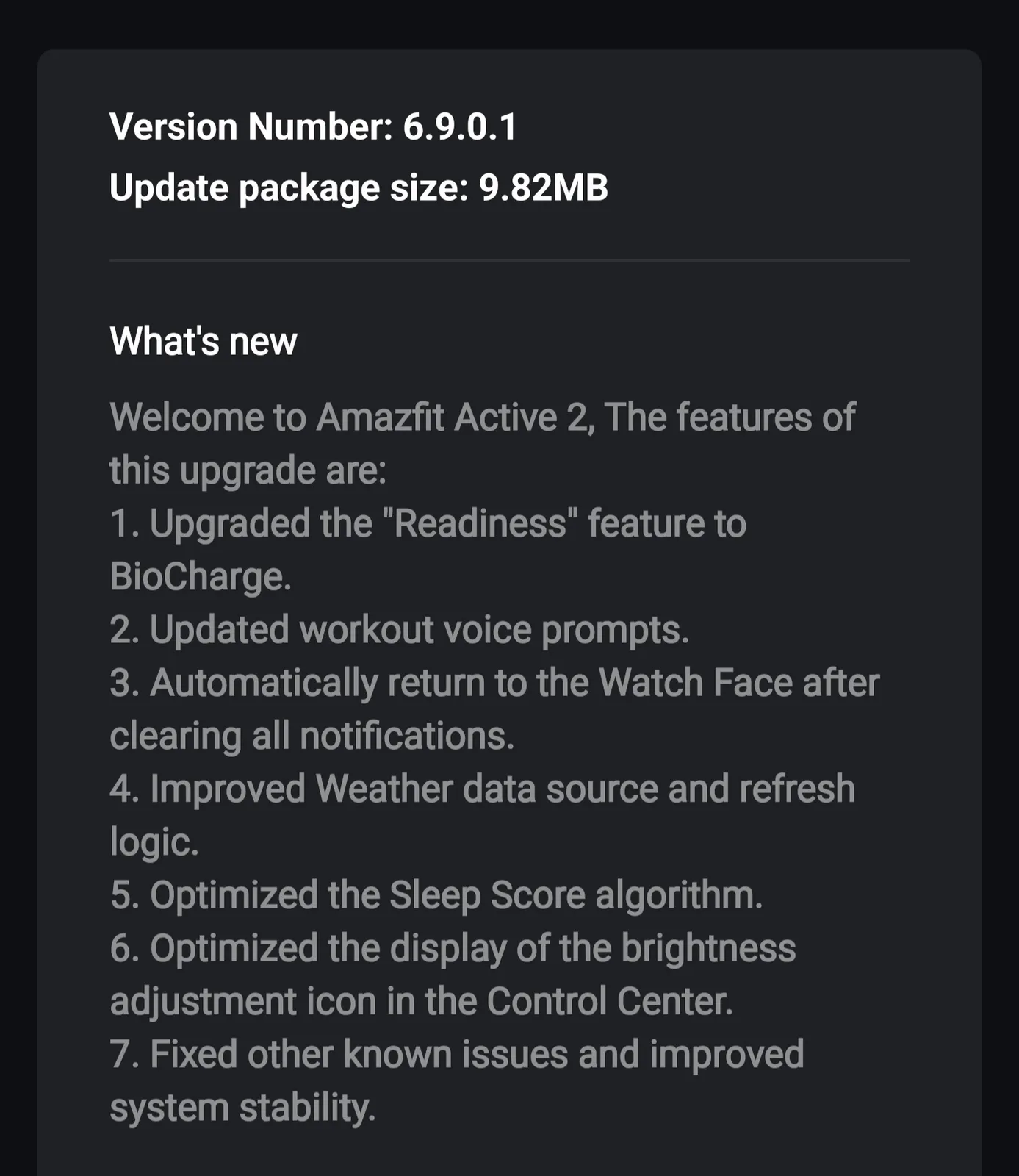 Den äldre mjukvaruversion 6.7.0.1som släpptes i december 2025, sades ta med BioCharge energinivåövervakningsverktyg till Active 2 smartwatch. Vissa användare av tidigare enheter av dessa wearables rapporterade dock att de inte kunde komma åt den här funktionen. Nu, med version 6.9.0.1, är BioCharge tillgänglig för alla användare, inklusive de med smartklockor som har 32 MB PSRAM.