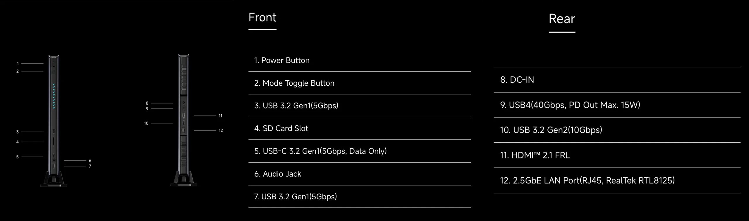AtomMan G7 Pro är inte heller blyg för portar, som bilden ovan visar. Minisforum har prissatt sin senaste mini-PC till 1 359,90 dollar som en barebone-enhet för dem som vill ta med sig sitt eget RAM-minne och lagringsutrymme, varav AtomMan G7 Pro stöder upp till 96 GB DDR5-5200 och 8 TB fördelat på två M.2 2280-kortplatser. Alternativt säljer Minisforum också en förkonfigurerad enhet med 32 GB RAM och 1 TB lagringsutrymme för 1 679,90 USD.