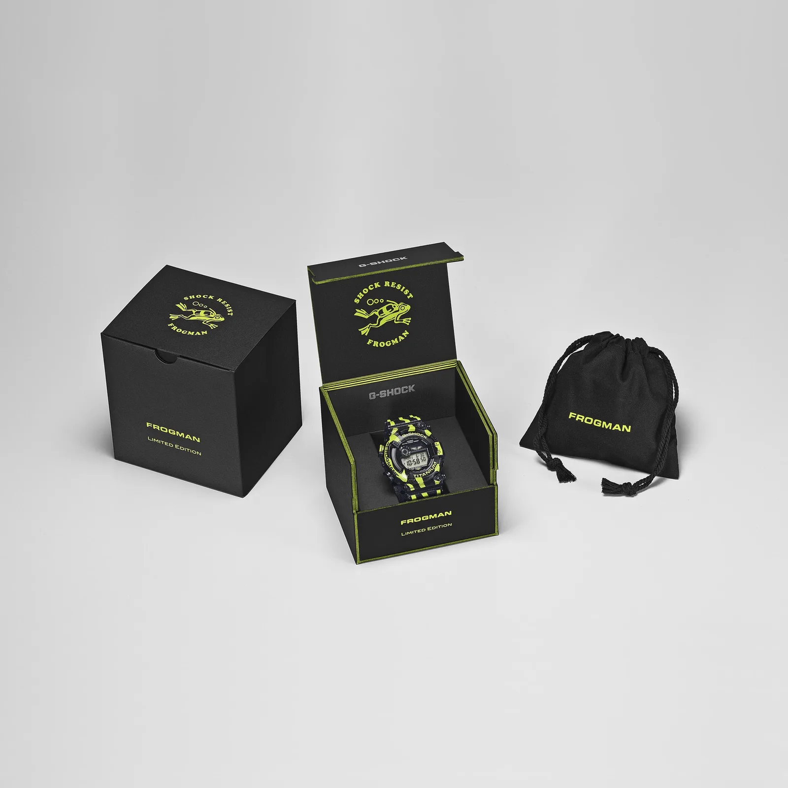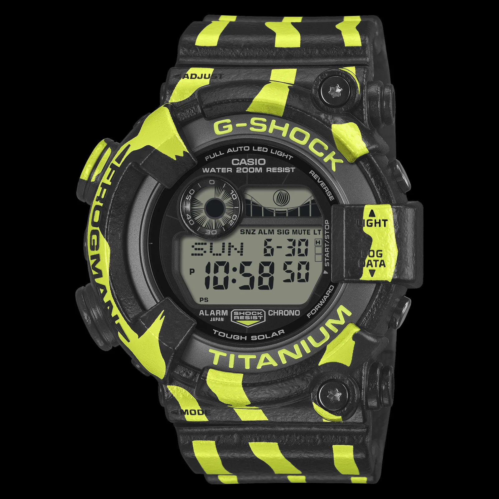 Efter månader av spridda läckor och ryktenhar Casio lagt upp en ny Frogman-modell för förbeställning i Japan, listad som GW-8200TPF-1JR. Den är en del av Master of G Sea-serien och är planerad att släppas i december 2025. Den här utgåvan är ganska flashig tack vare sitt svart- och fluorescerande gröna mönster, som är baserat på Poison Dart-grodan som finns i den sydamerikanska regnskogen. Konstverket och finishen är tematiserade kring grodans färg och ojämna textur.