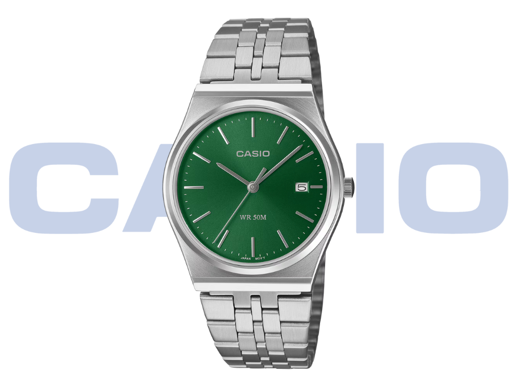 Casio har släppt sin nya MTPB145DC-3AV klocka i rostfritt stål, med vintage 1980-talsstil. Med ett pris på 110 dollar i USA är denna klocka en riktig "throwback". Den minimalistiska gröna urtavlan kombineras med en klassisk boett och ett stålband.
