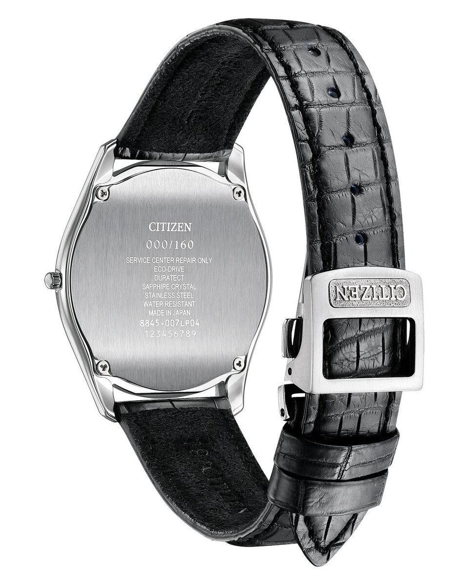 Från baksidan visar klockan tydligt sin identitet med en borstad boettbaksida stämplad med "000/160", vilket refererar till dess status som begränsad upplaga. Den drivs av Citizens 8845 Eco-Drive-urverksom driver klockan med hjälp av omgivande ljus och som inte behöver bytas ut. Duratect-härdning, ett reptåligt safirglas och en japansk tillverkning kompletterar premiumspecifikationerna.