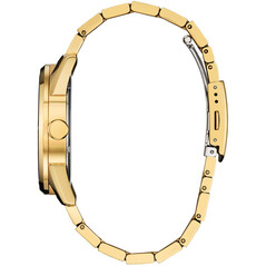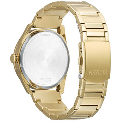 Citizen har lanserat AW0089-52E som det senaste tillskottet till sitt sortiment i Storbritannien. Denna 42 mm klocka är utrustad med ett boett och armband i rostfritt stål, båda med en enhetlig guldton. Konstruktionen är mer inriktad på segmentet "Classic", tack vare en blandning av borstade och polerade ytor som definierar boettens linjer.