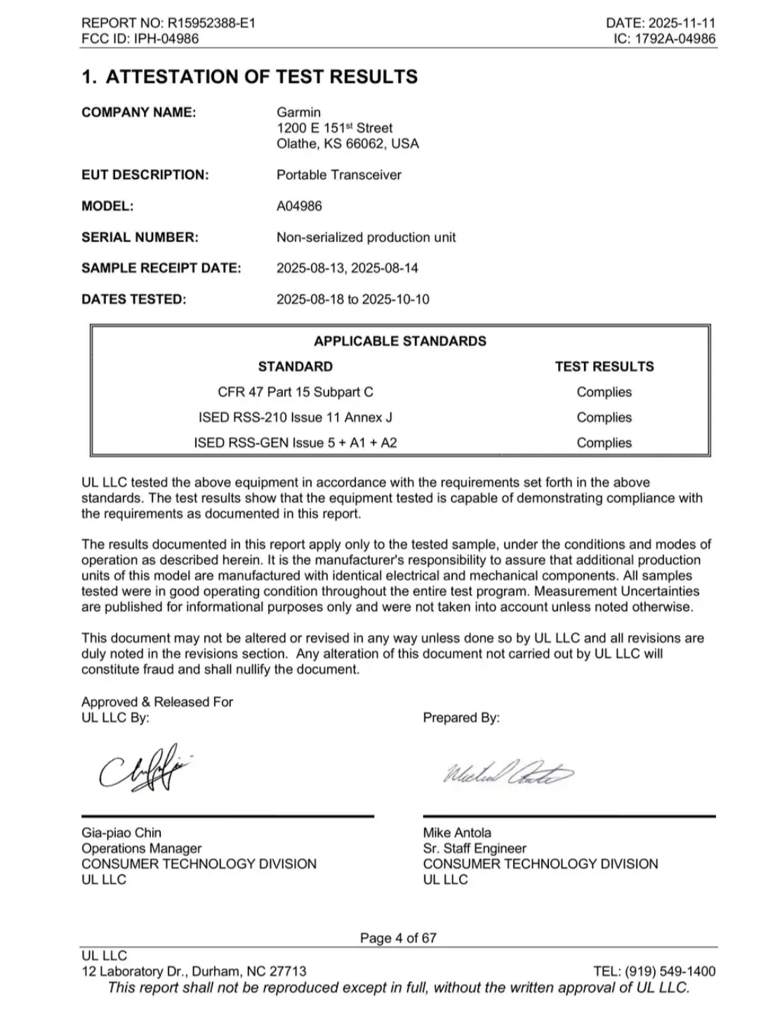 Nu har Federal Communications Commission (FCC) publicerat initial dokumentation för en mystisk Garmin-enhet med modellnummer A04986. Garmin A04986 beskrivs som en bärbar sändtagare hela tiden och stöder förväntad anslutning som finns i de flesta Garmin-enheter, som ANT + och Bluetooth Low Energy. I den meningen bör den icke namngivna enheten vara kompatibel med Garmin Connect.