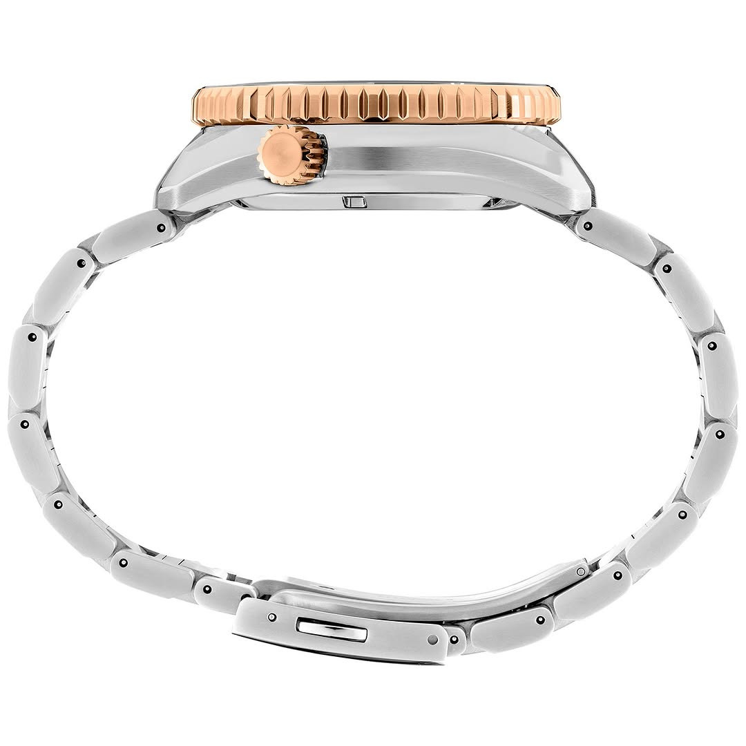 Boetten är tillverkad av titan och mäter 44,8 × 14,7 × 50,9 mm, med en borstad yta och en roséguldfärgad krona, tillsammans med en matchande roséguldfärgad bezelring. Själva boetten har en safirinsats med en 24-timmarsskala för dubbel tidsangivelse. Vattenbeständigheten är beräknad till 10 bar.