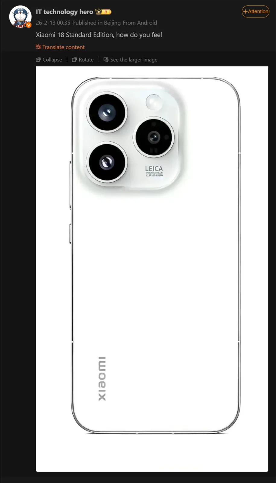 Ny Xiaomi 18-design avslöjar sig med iPhone-inspirerat Leica-kamerahus