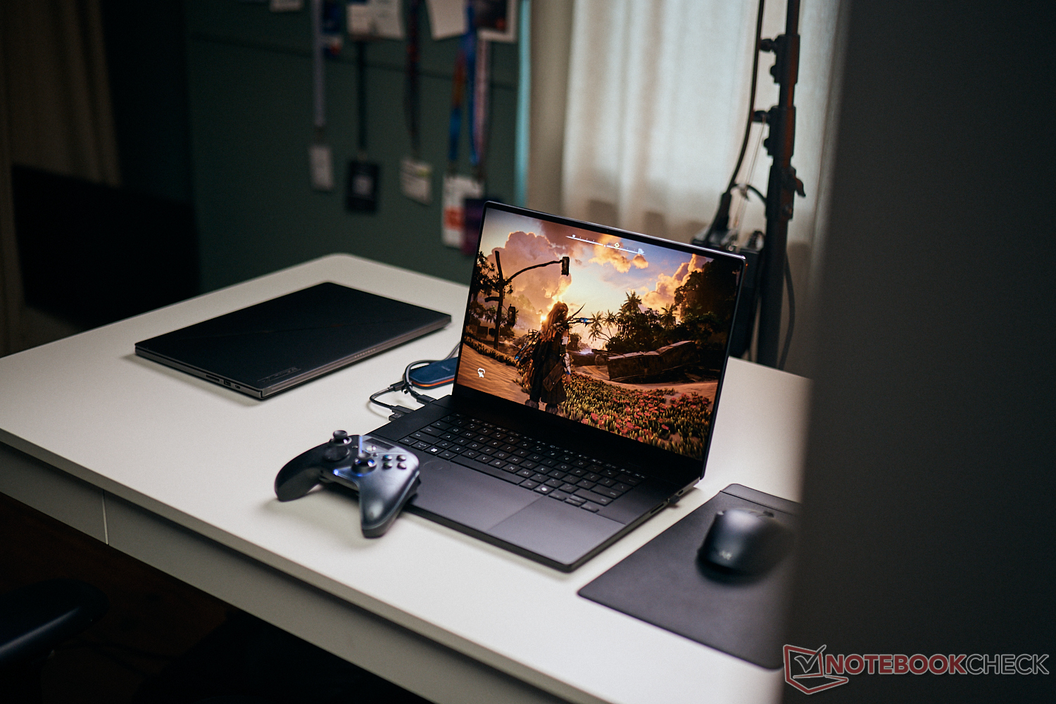 Precis som spelaren ROG Zephyrus G16 är chassit på den nya P16 något tjockare för att göra plats för den förbättrade ångkammarkylningsenheten. De mobila high-end GPU:erna (RTX 5070 Ti, RTX 5080 eller RTX 5090) körs med en maximal TGP på 120 watt och totalt sett är prestandan hos de två syskonen i princip identisk. Detta inkluderar även spelprestanda, trots att P16 inte stödjer Advanced Optimus GPU-switching. Jämfört med tidigare P16-modeller kan du också dra nytta av mer VRAM (12-24 GB beroende på GPU) när du redigerar bilder eller videor. Du får också upp till 64 GB RAM, men det är tyvärr fastlött och kan inte uppgraderas.