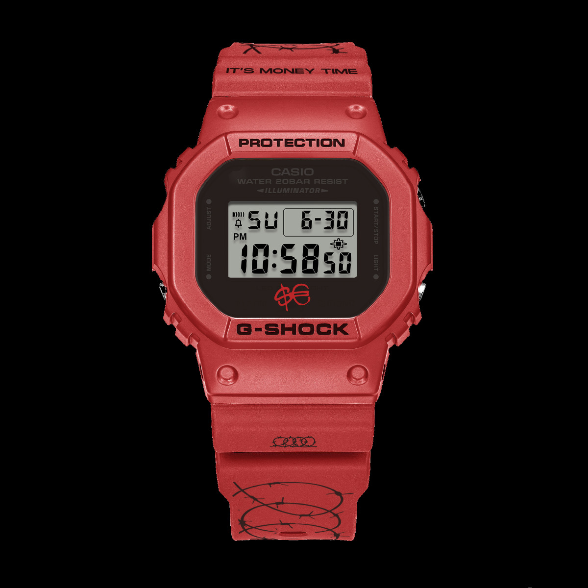 Klockorna bär Sferas visuella kännetecken genom hela designen. Armbandet har en grafik av taggtråd som skapats av konstnären, medan frasen "It's Money Time" löper längs bandet. Hans logotyp är ingraverad på boetten och visas på urtavlan när den röda LED-bakgrundsbelysningen aktiveras. Båda modellerna har en svart-röd färgsättning, där 6900 har en mattsvart boett med röda inslag och 5600 är helt klädd i klarrött.